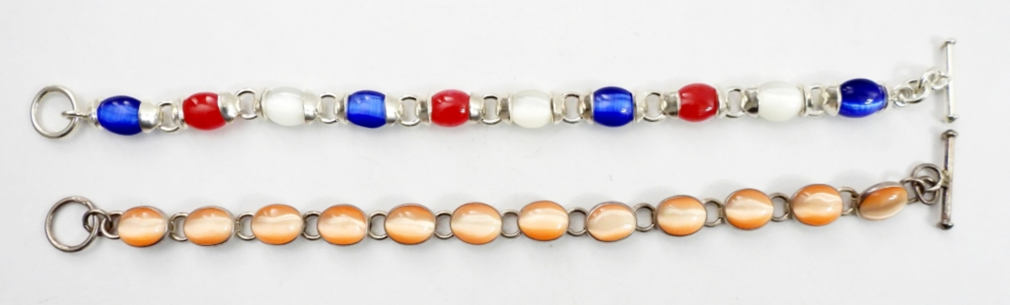 TWO CATS EYE BRACELETS IN STERLING SILVER. BOTH ARE 7.5″. 23.3 DWT
