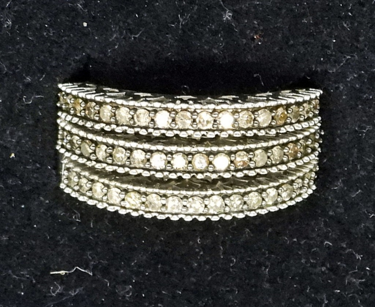 THREE STERLING SILVER BANDS WITH CHAMPAGNE DIAMONDS. APPROX .31 CARATS PER RING. SIZE 8 5 DWT