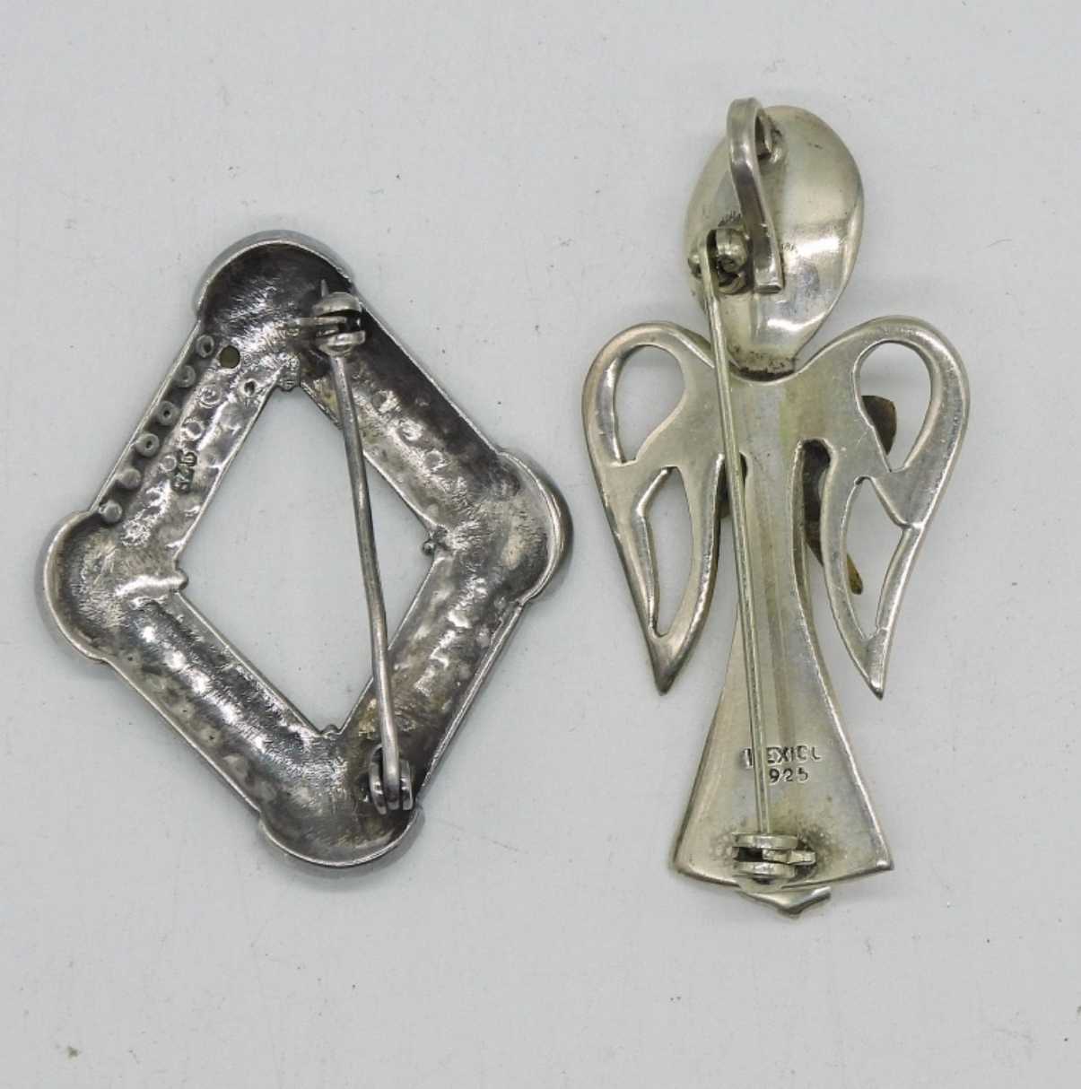 Two Sterling Pins, One Spoon Angel and One with Marcasite with Gemstones. 11 DWT