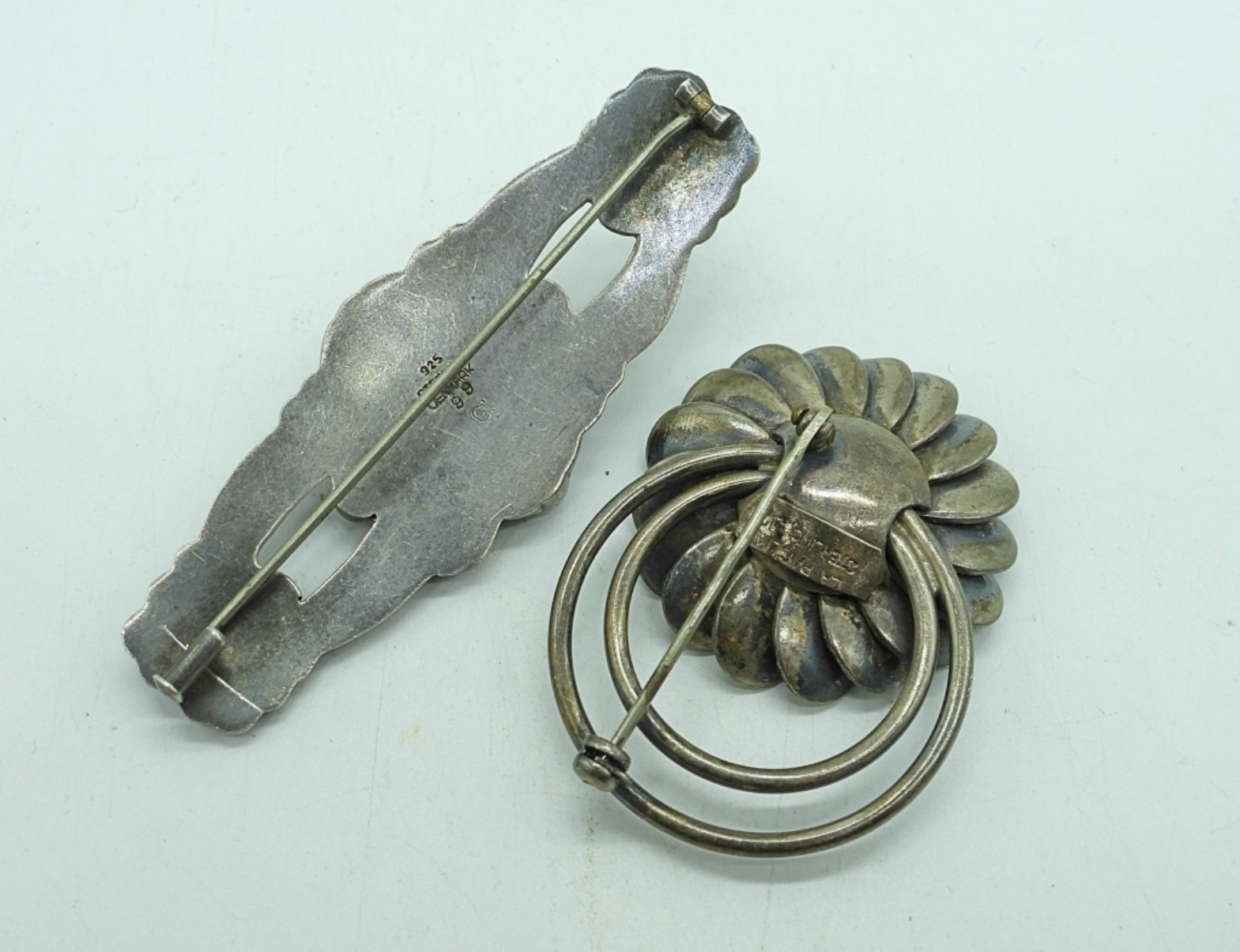 TWO VINTAGE STERLING BROOCHES. LA PAGLIA & DENMARK. 21.6 DWT