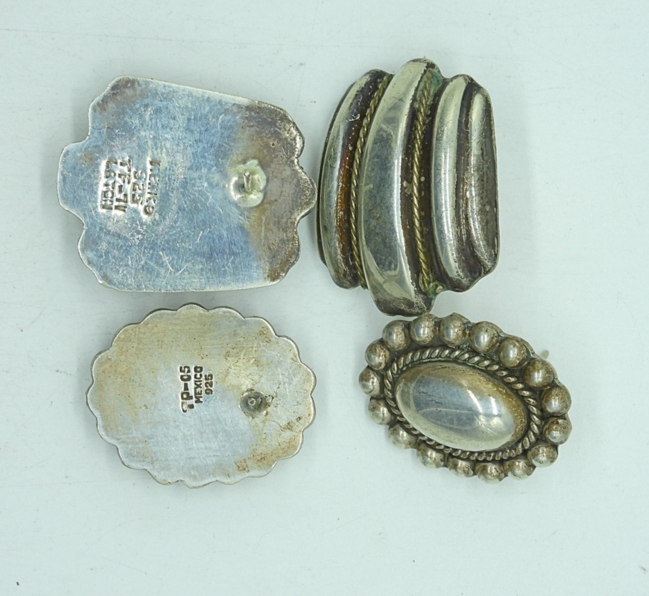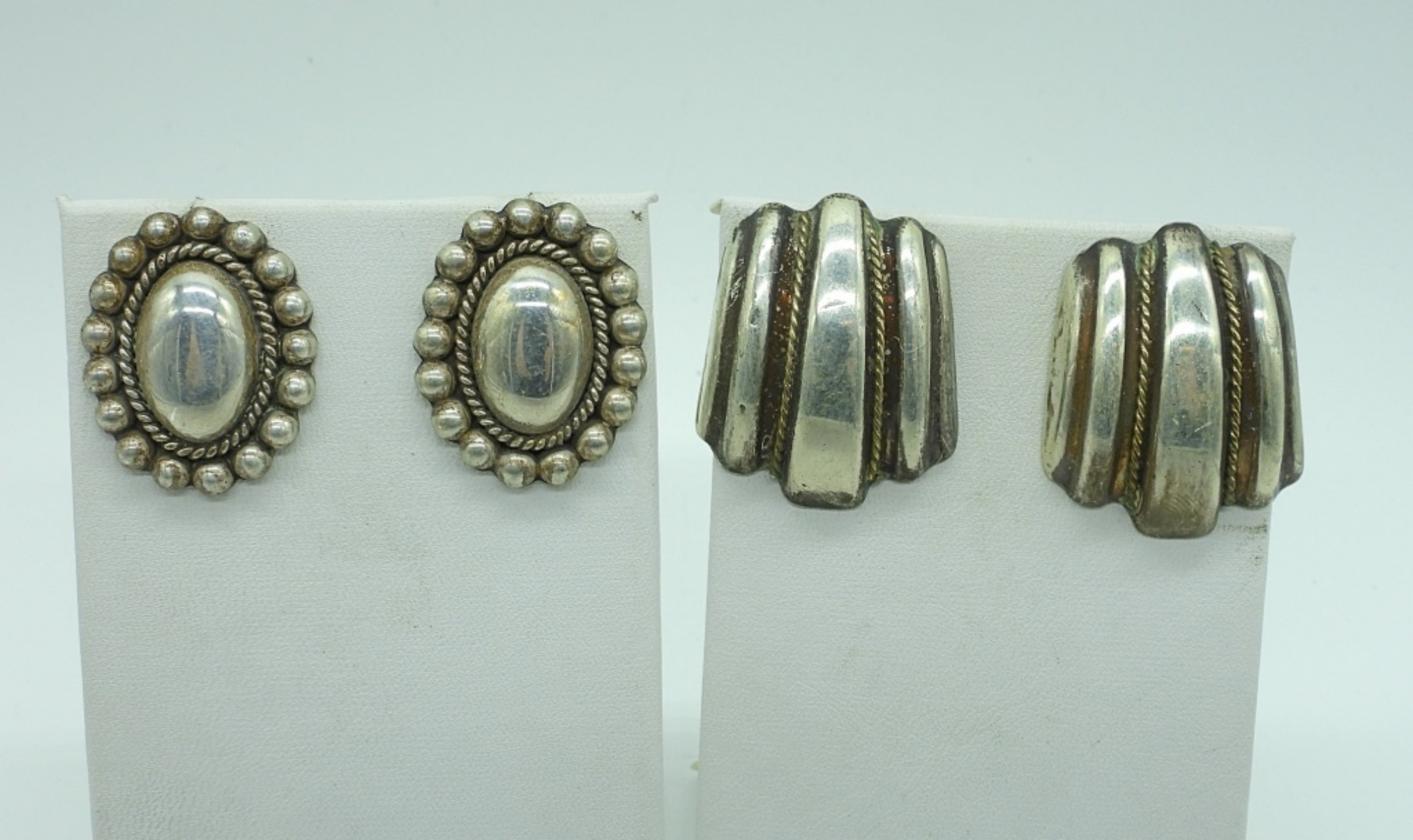 TWO PAIR OF STERLING MEXICO VINTAGE PIERCED EARRINGS. MARKED MEXICO 925. NO EARRING BACKS. 20.07 DWT