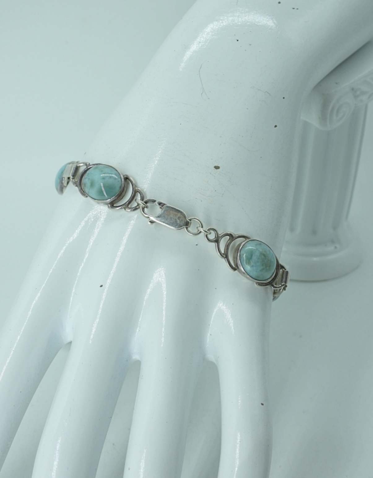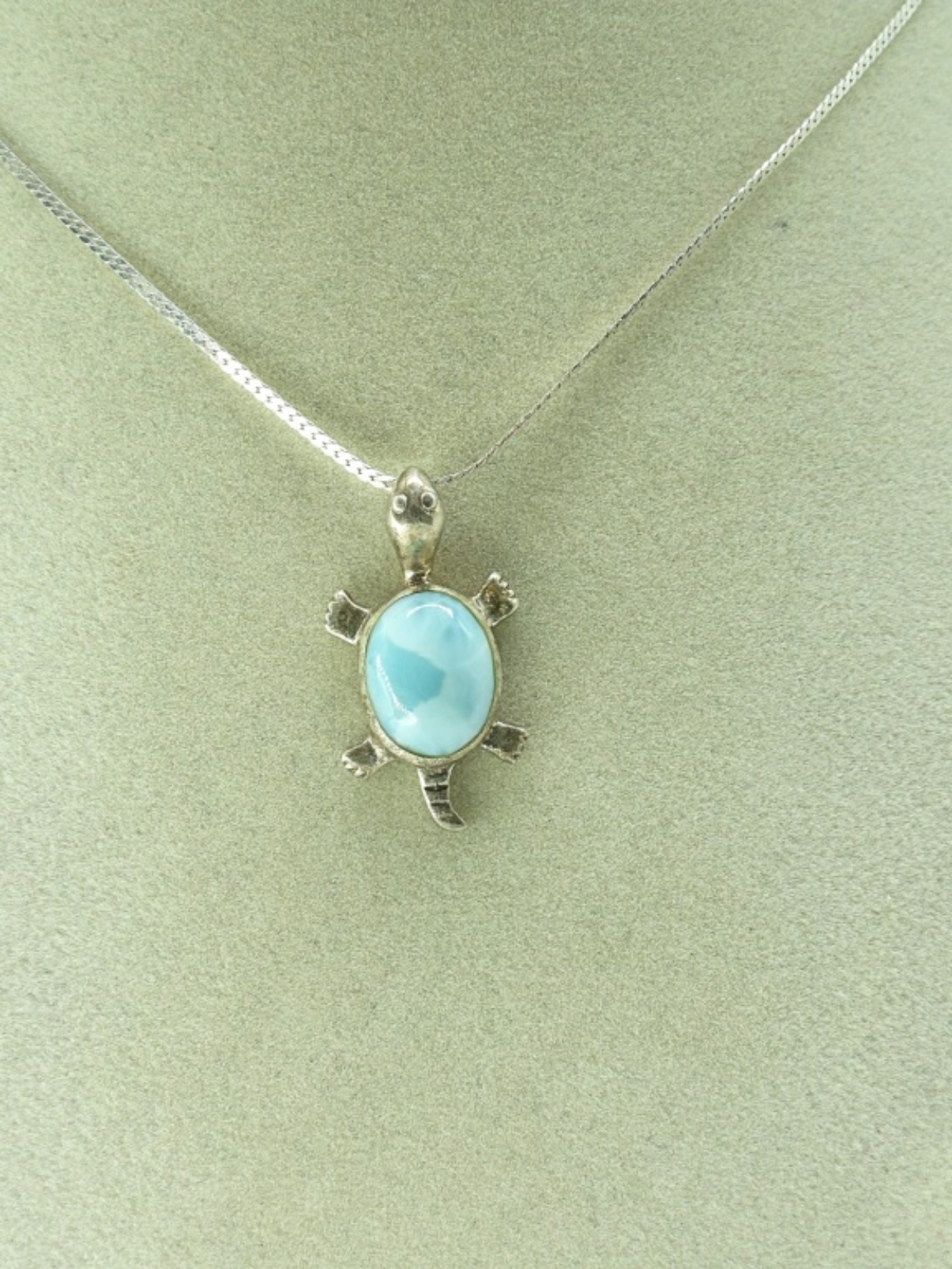 30″ STERLING CHAIN WITH A STERLING TURTLE LARIMAR PENDANT. STERLING & LARIMAR BRACELET 8″. 13.7 DWT