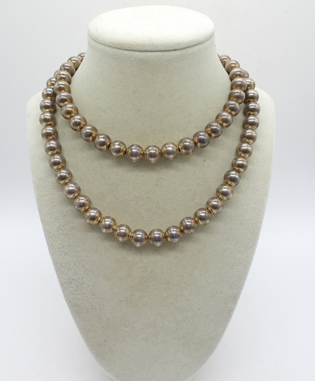 30″ STERLING BEADS ON A STERLING CHAIN, NECKLACE. 54.4 DWT