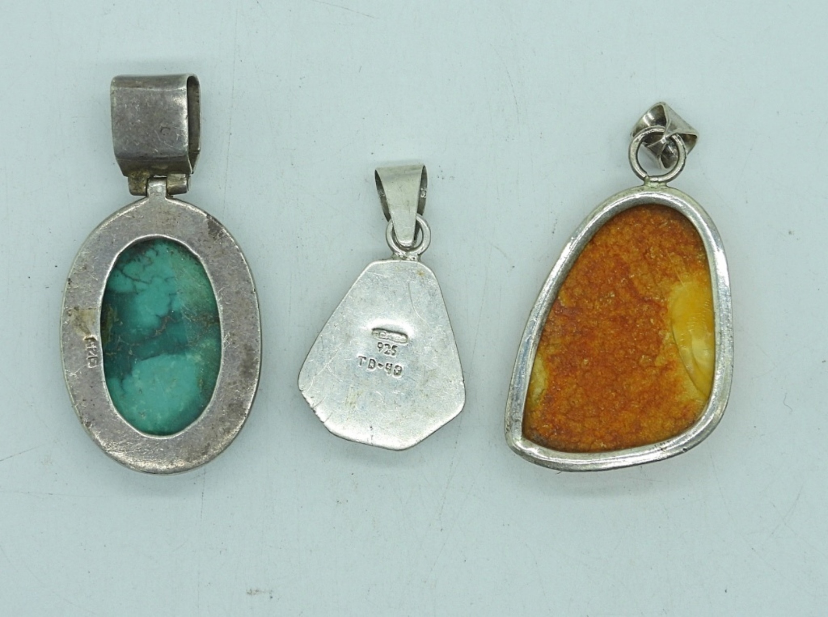 THREE VINTAGE STERLING GEMSTONE PENDANTS. 1.5″-2″. 20 DWT