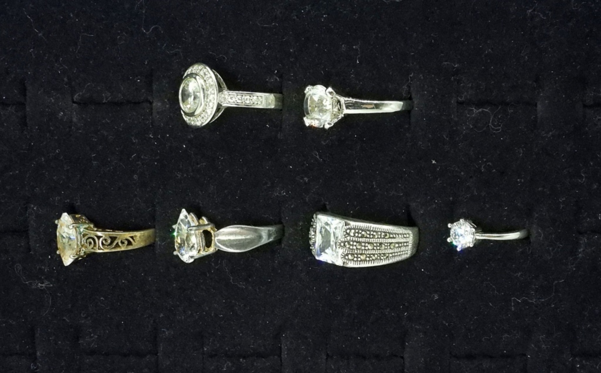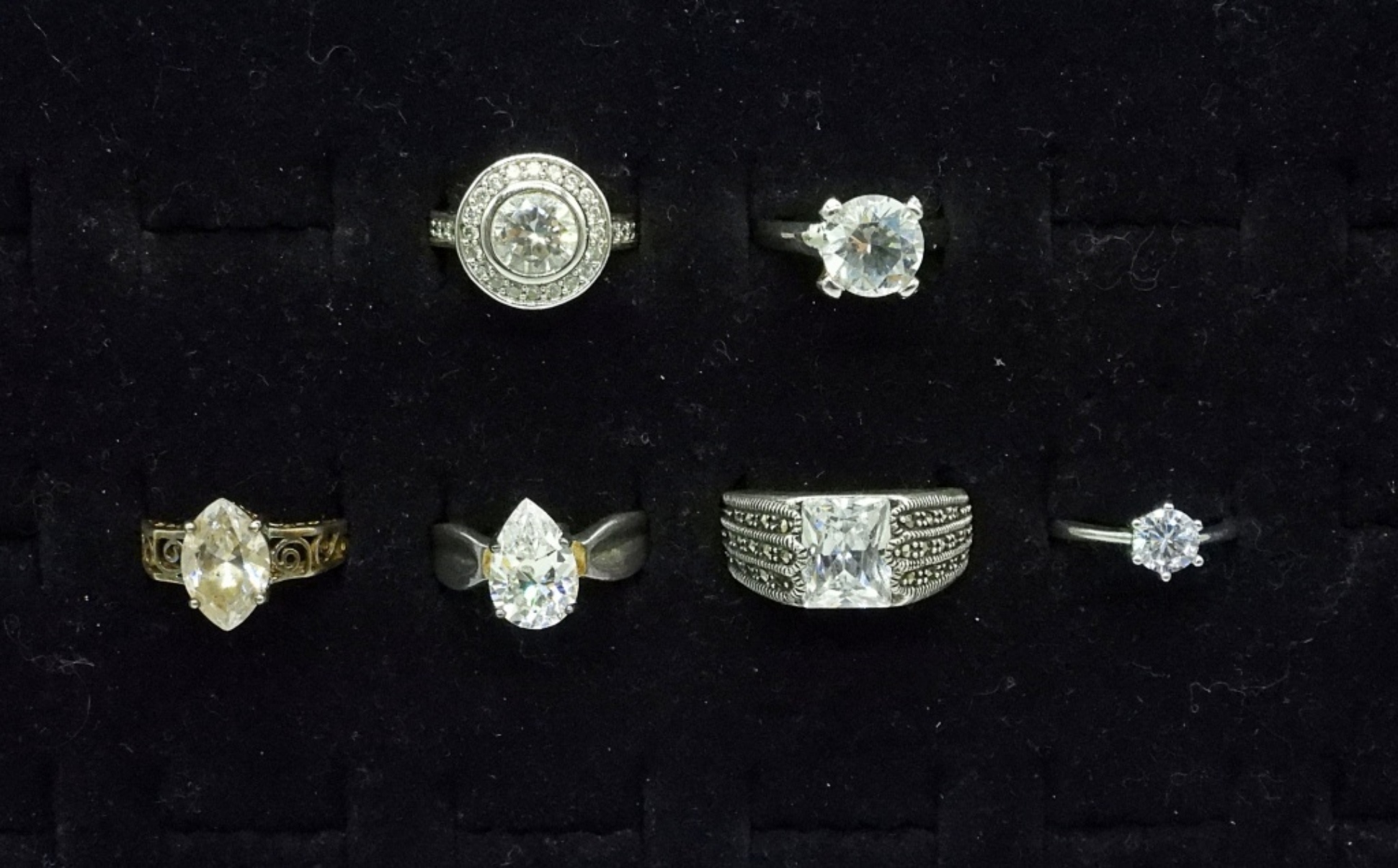 SIX STERLING BRIDAL STYLE FASHION RINGS. SIZES 5-9. 18.8 DWT