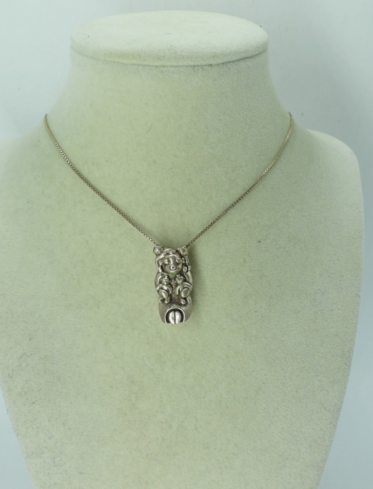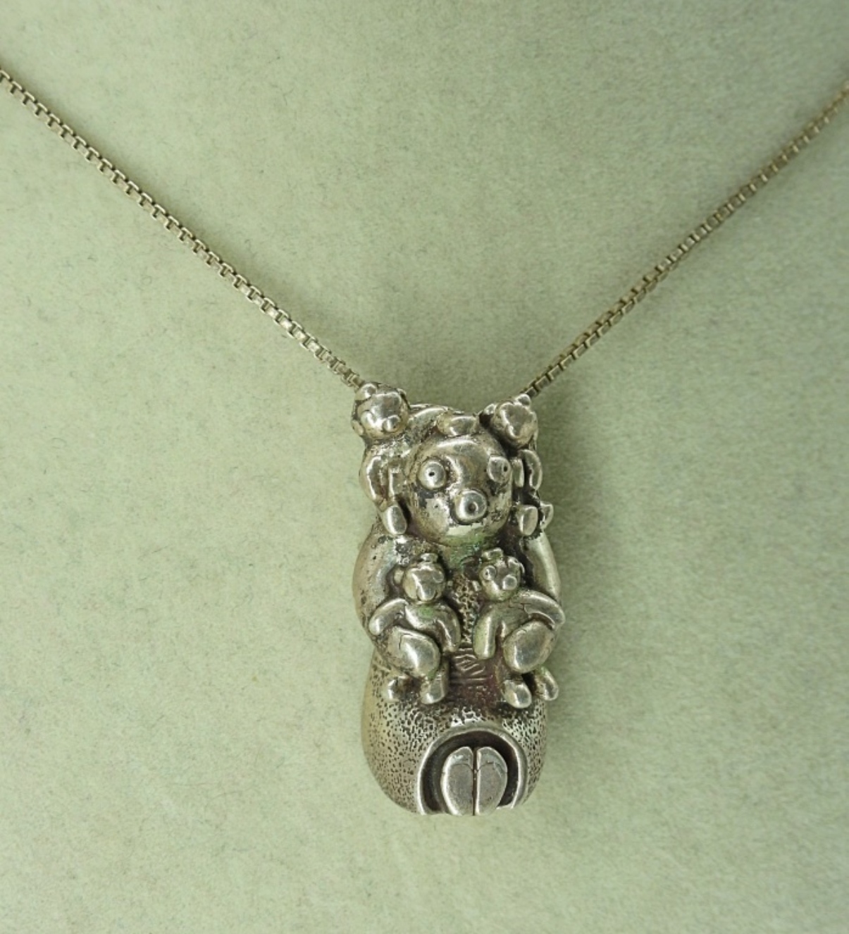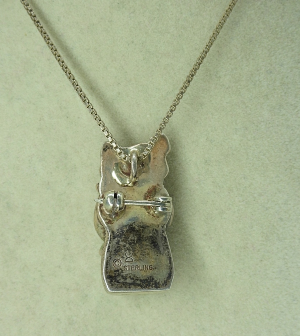 CAROL FELLEY STERLING STORYTELLER PENDANT/PIN ON A 18″ CHAIN. PENDANT IS 1″. 7.7 DWT