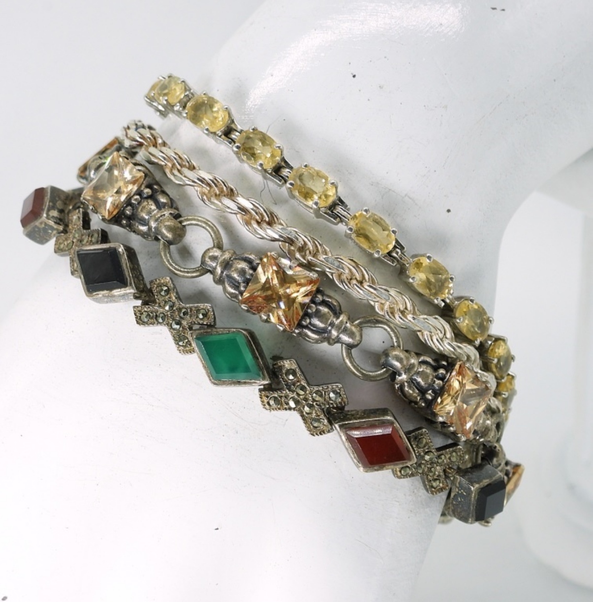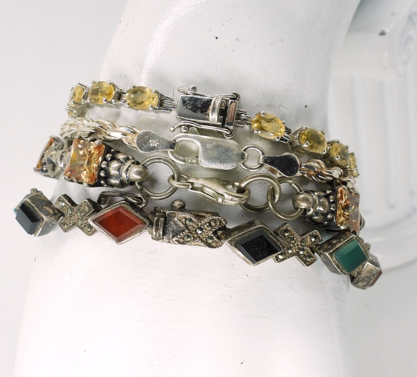 FOUR GORGEOUS STERLING BRACELETS WITH VARIOUS GEMSTONES. 7-7.5″. 36.9 DWT