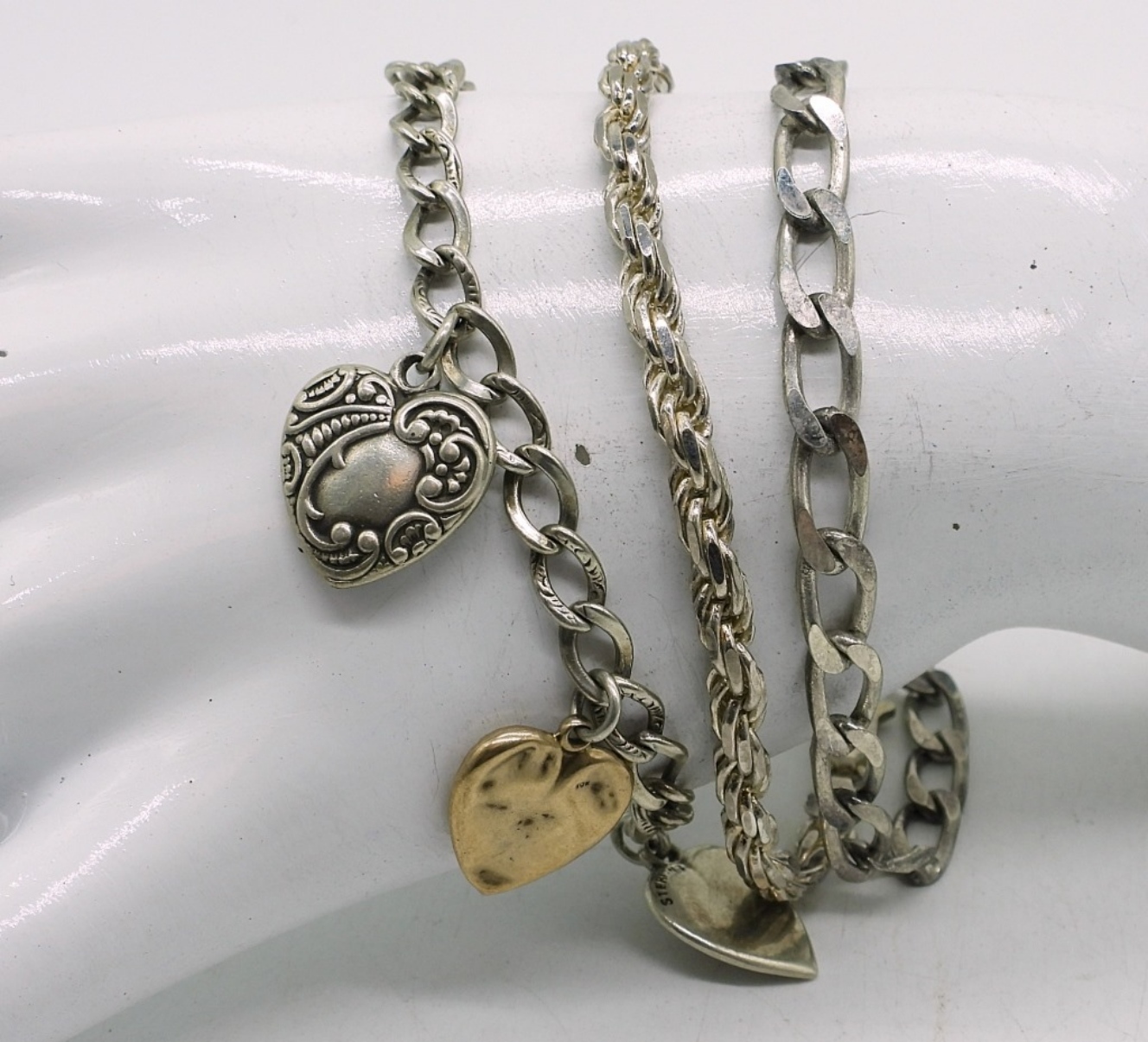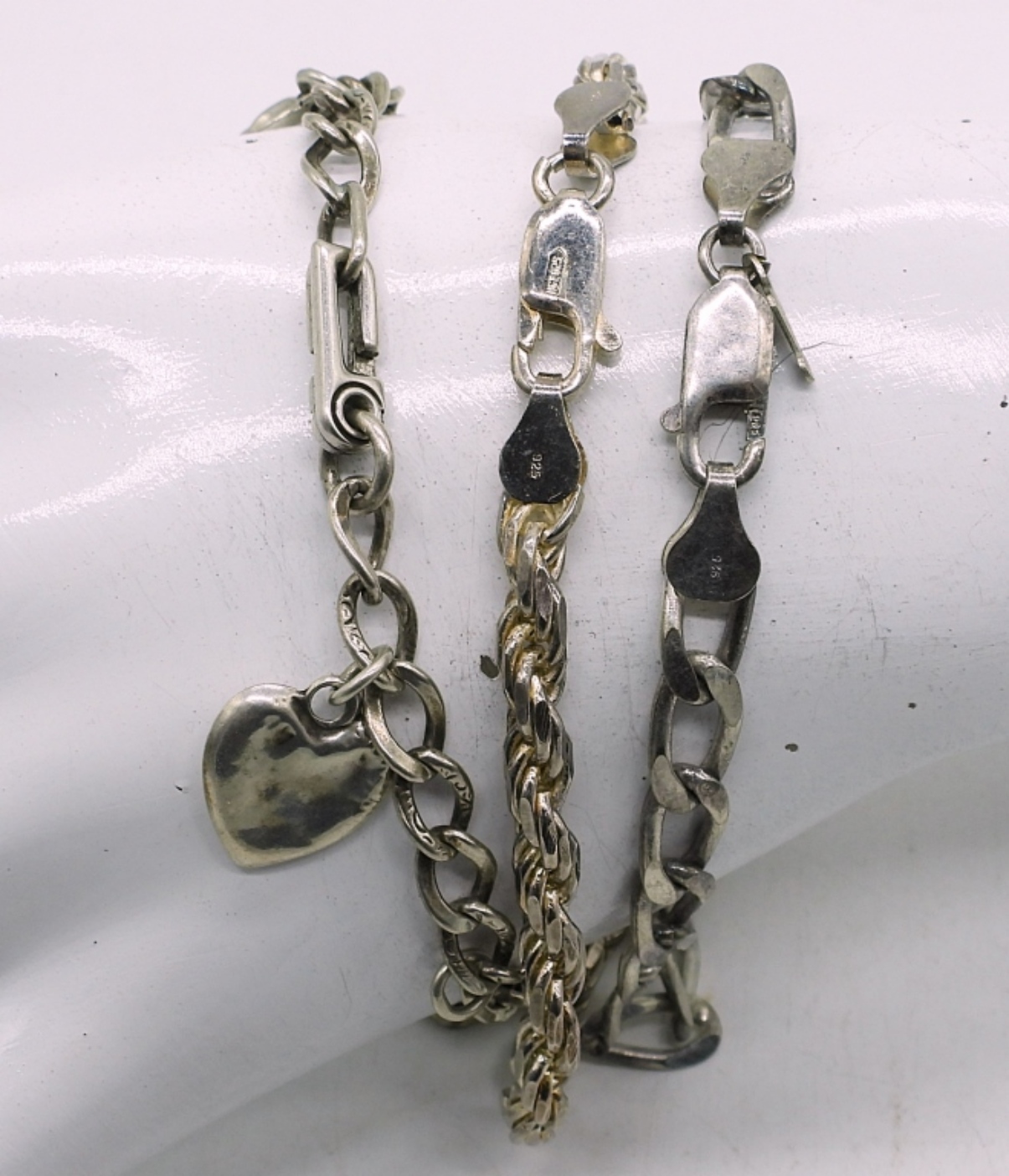 THREE STERLING BRACELETS. 7.5-8″. 22.4 DWT