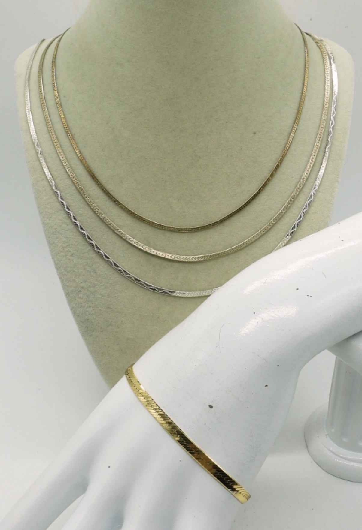 STERLING GOLD AND SILVER TONE NECKLACES AND BRACELETS. 8″, 17″, 19.5″, 24″. 12.2 DWT