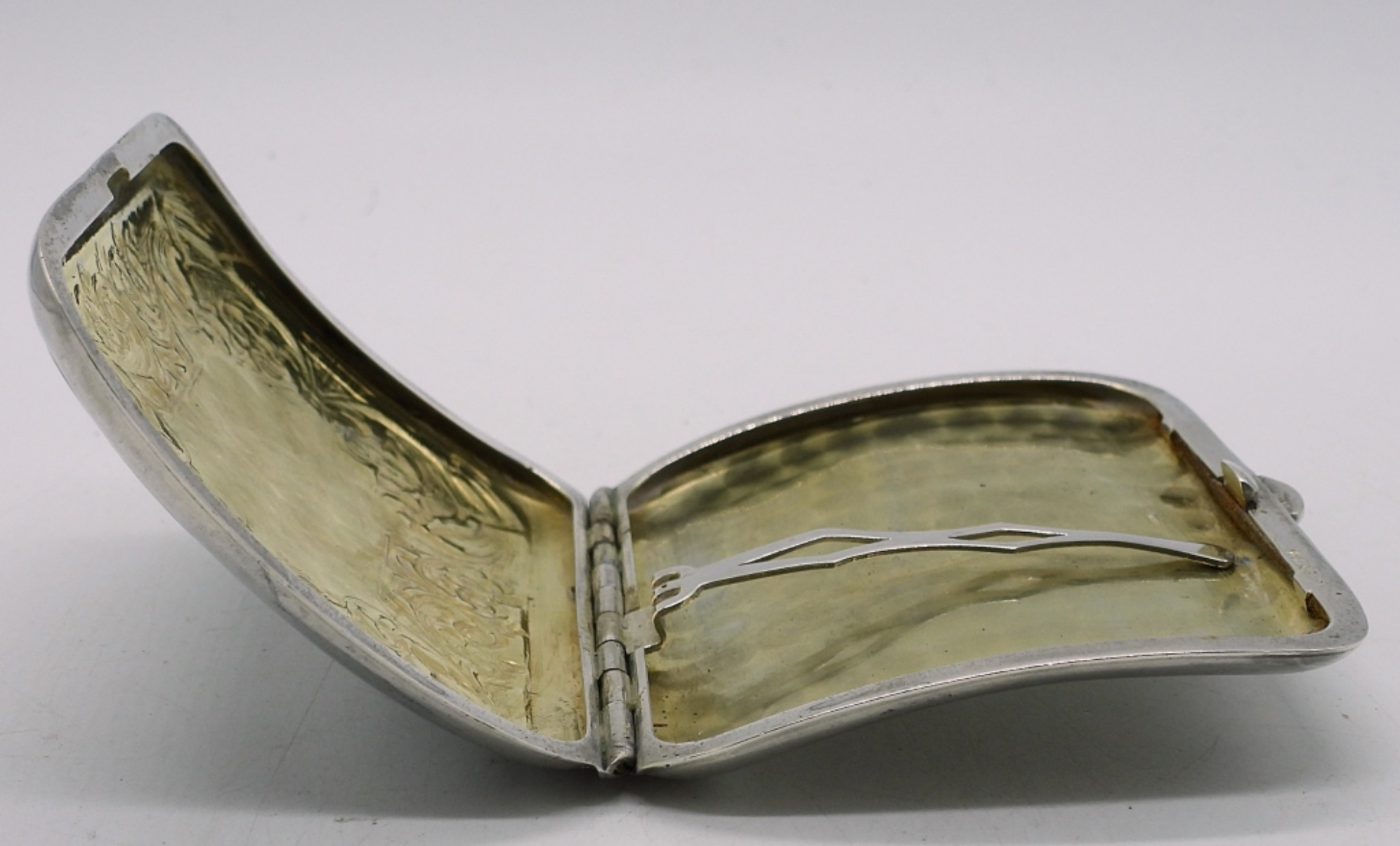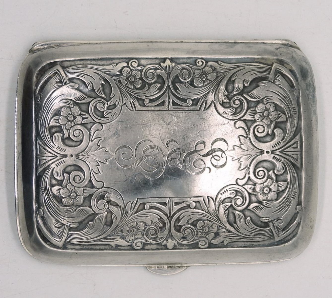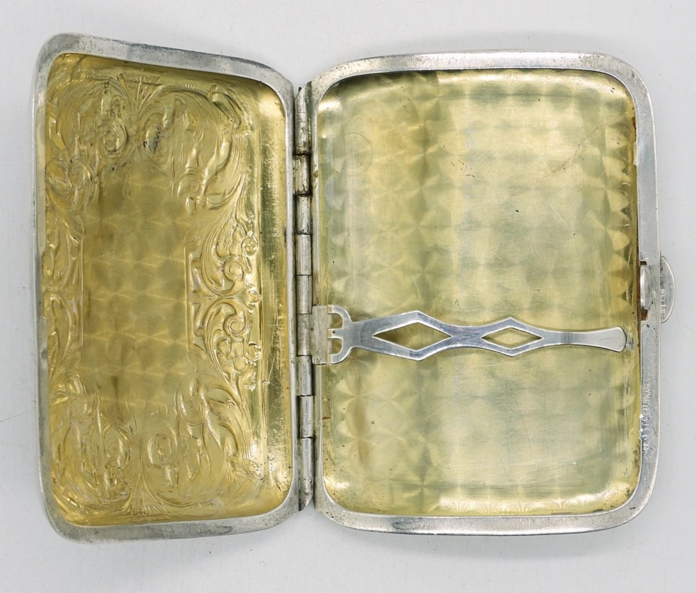 VINTAGE STERLING CIGARETTE CASE ENGRAVED. 3.5″x2.5″. 38.2 DWT