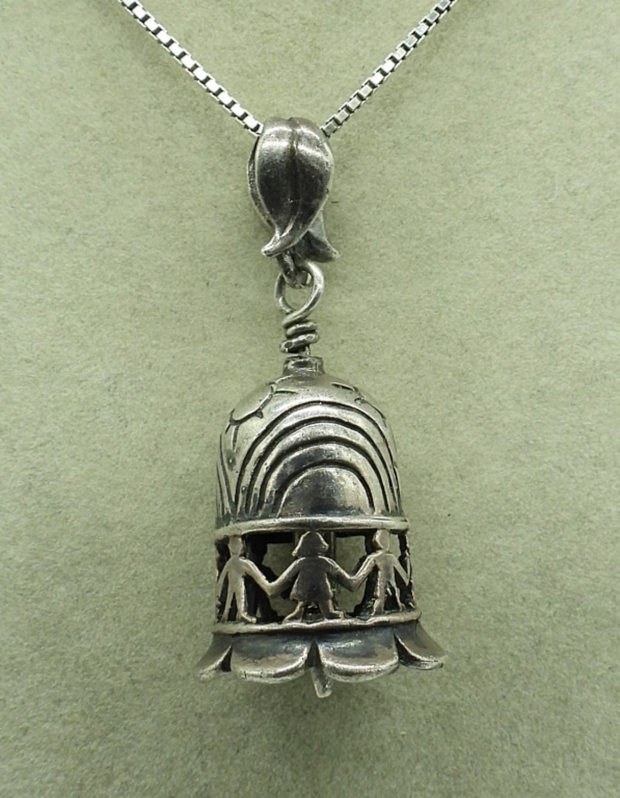 THE BELL COLLECTION, CHILDREN’S BELL PENDANT-STERLING ON A 18″ STERLING CHAIN. 6.6 DWT