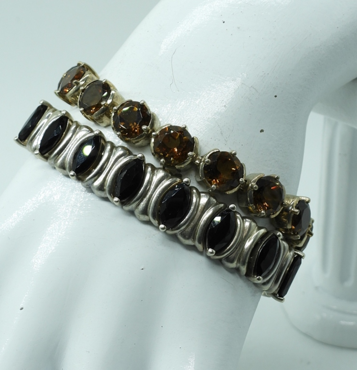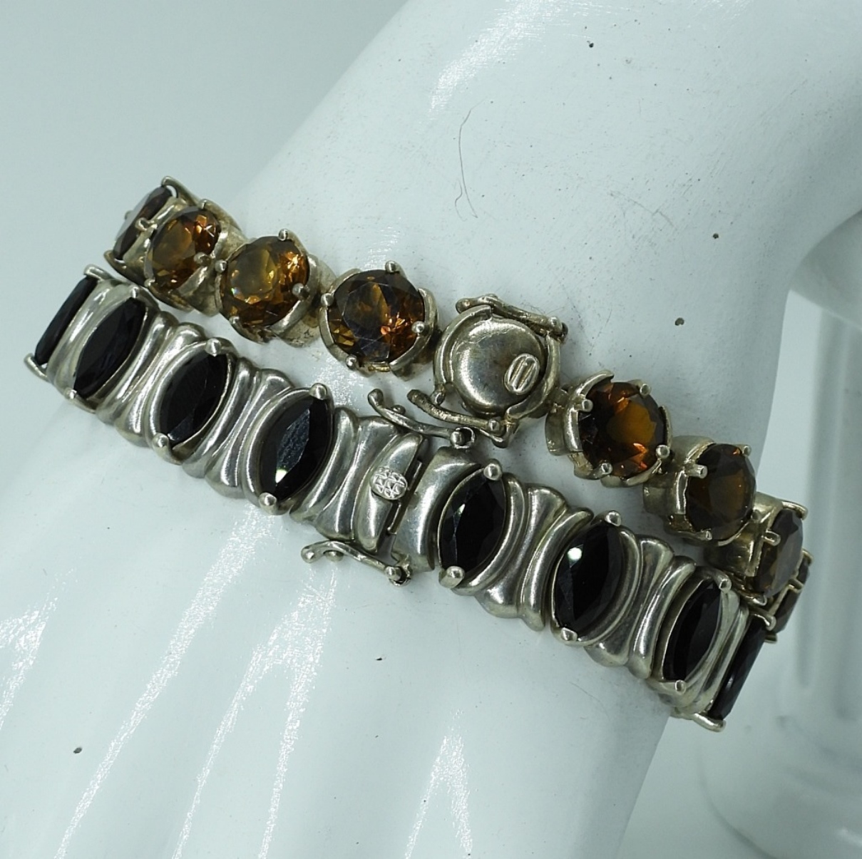 TWO GORGEOUS VINTAGE STERLING GEMSTONE BRACELETS, 7″. 33.5 DWT