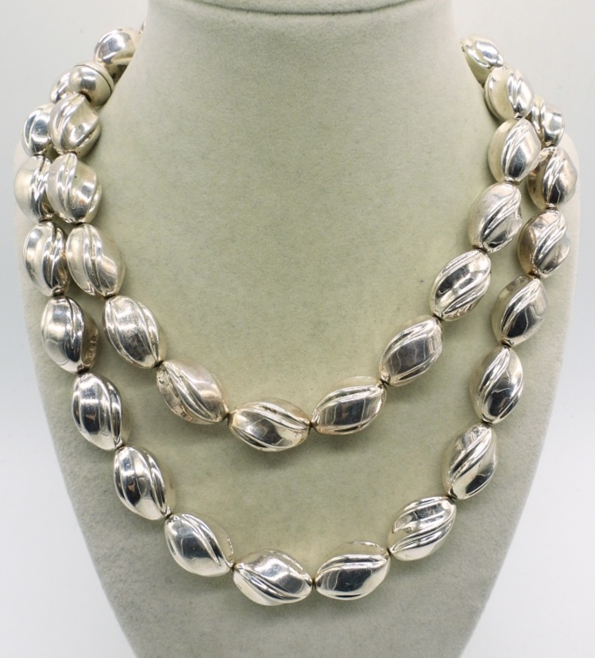 999 FINE SILVER (99.9% SILVER), 36″ NECKLACE. MAGNETIC CLASP. MATCHING BRACELET IN NEXT LOT. 73.7 DWT
