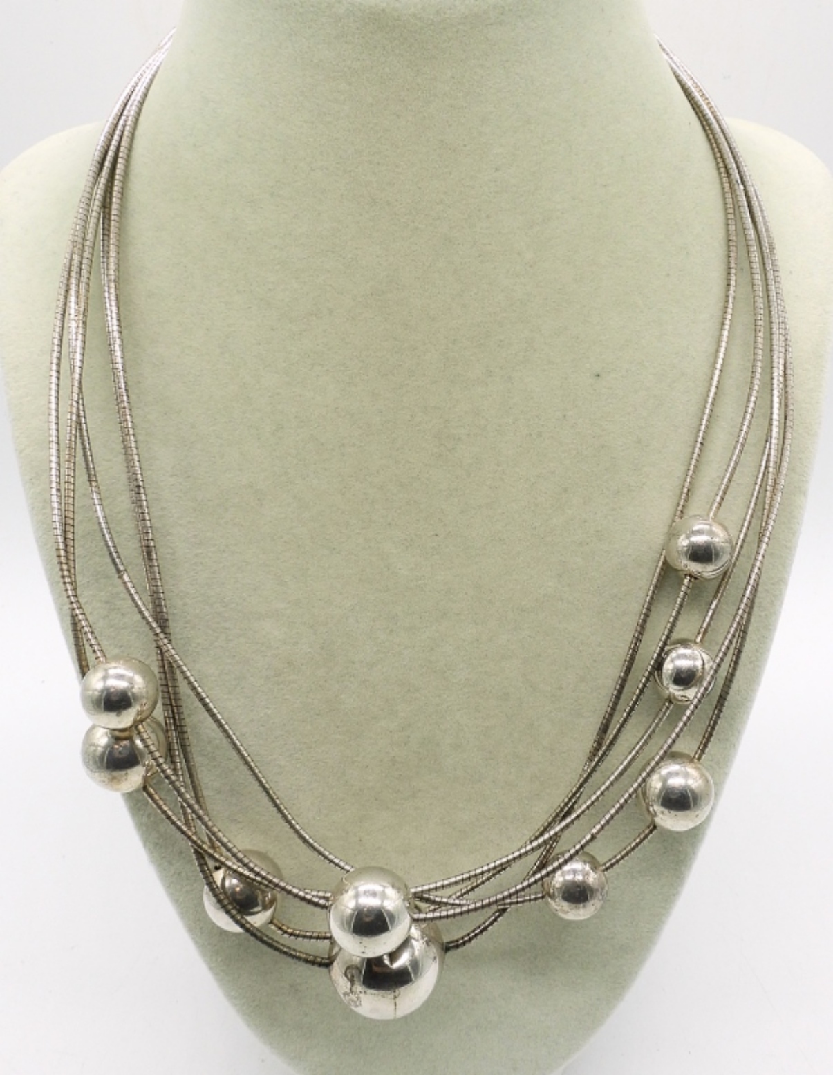 MULTI STRAND NECKLACE, VINTAGE STERLING. 20″. 39.3 DWT