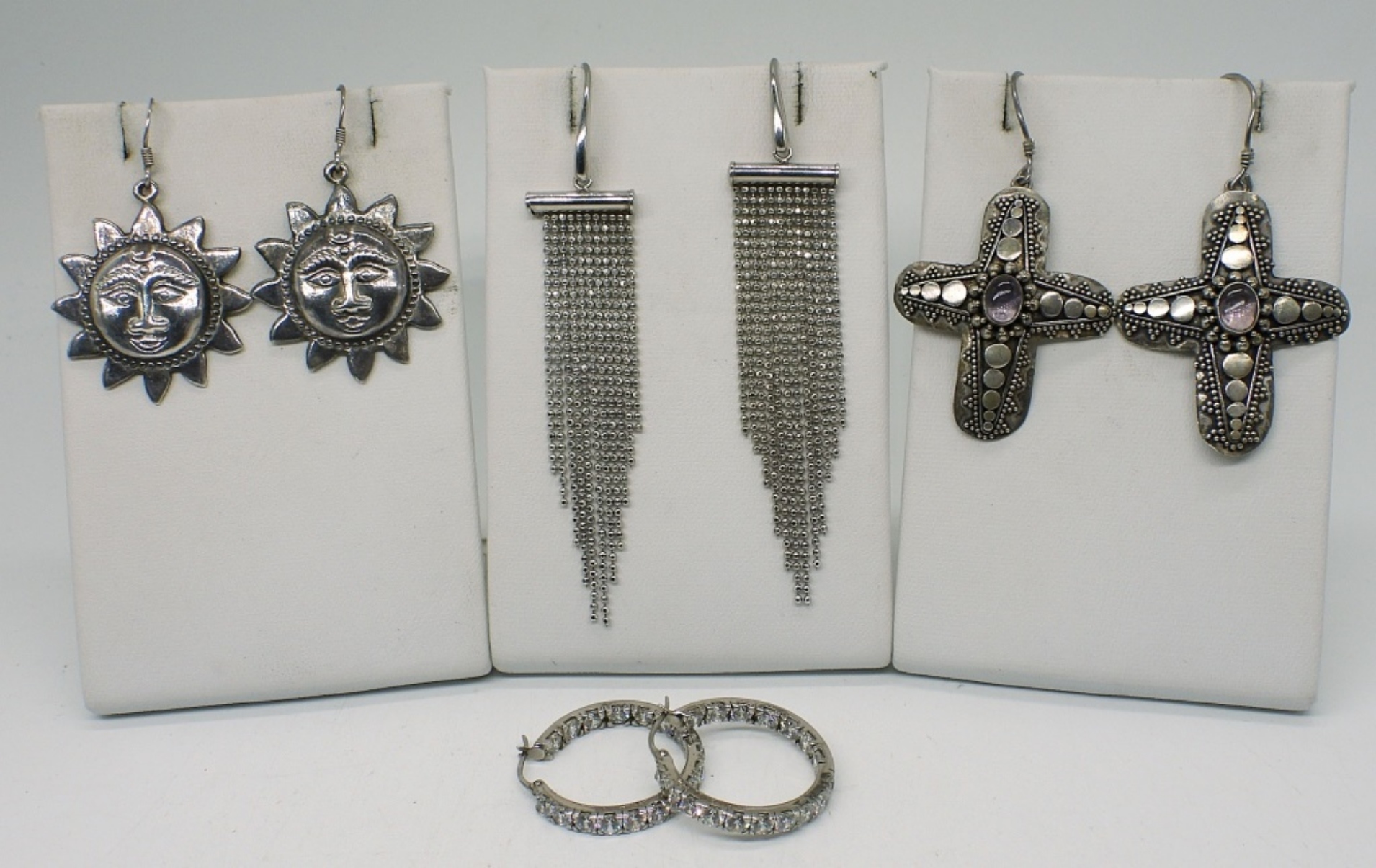 FOUR PAIR OF GORGEOUS STERLING SILVER PIERCED EARRINGS. 1″-3″. 20.6 DWT