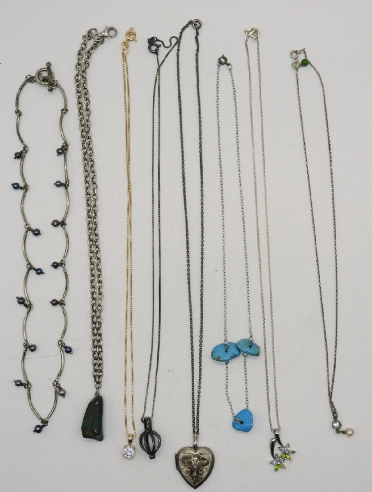 31 DWT. VARIOUS STYLES INCLUDING LOCKET, GEMSTONES, GOLD TONE. LENGTHS: (4) 16″, (4) 18″