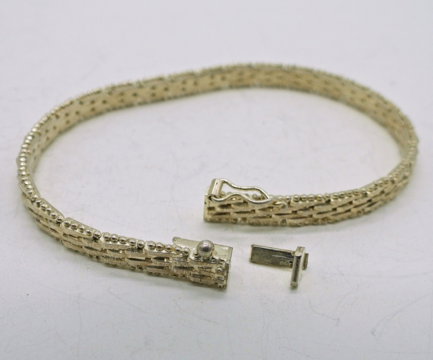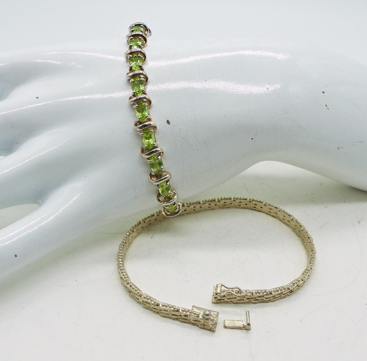 Two Sterling Vintage Fashion Bracelets, 7″ Marked 925. 18.8 DWT. ONE IS BROKEN, BUT FIXABLE, SEE PHOTOS.