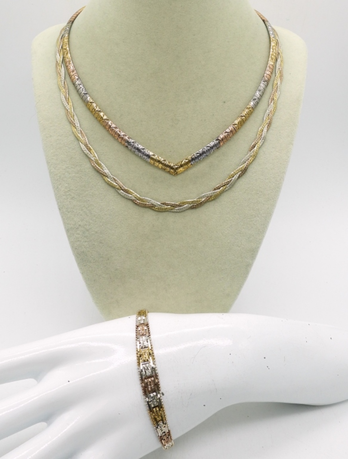 30 DWT. GOLD TONES & ROSE GOLD TONES. 7″ BRACELET, 17″ NECKLACE, & 16″ NECKLACE. ALL STAMPED.