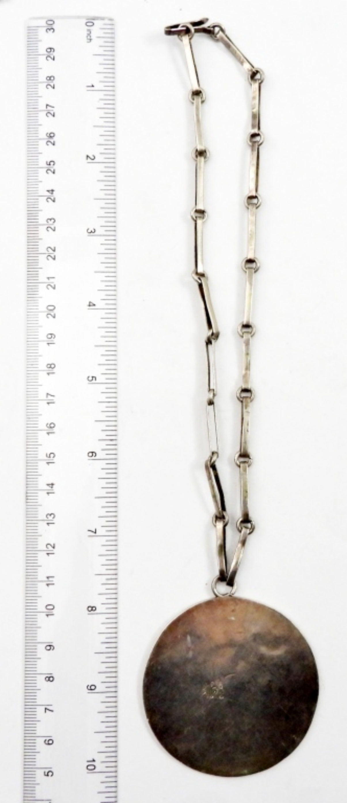 VINTAGE MEXICO STERLING NECKLACE WITH MULTI COLORED PENDANT, 16 IN.28.8