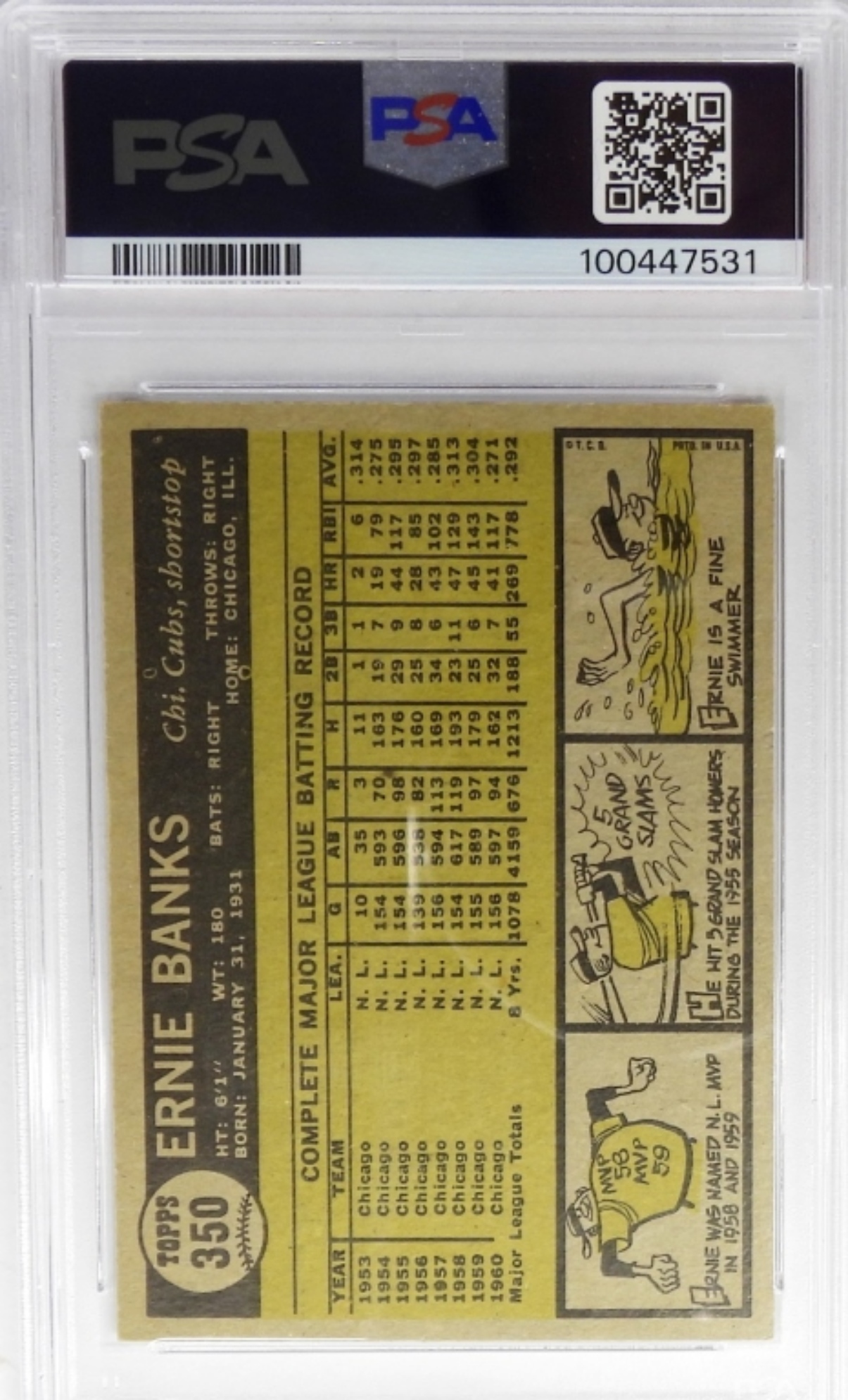 1961 TOPPS #350 ERNIE BANKS PSA 4 VG-EX