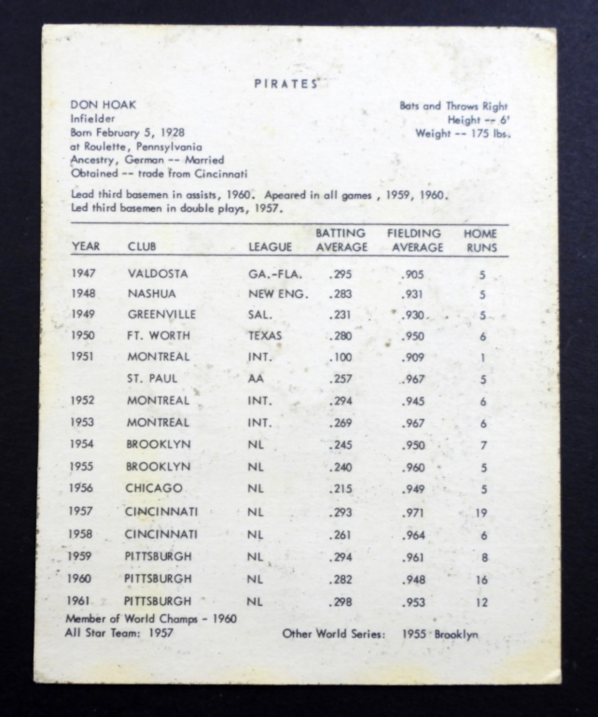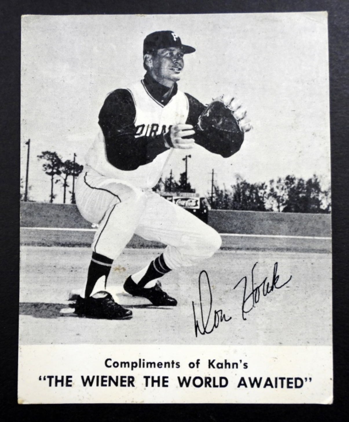 1962 KAHN’S WIENERS DON HOAK, PIRATES, NICE CARD