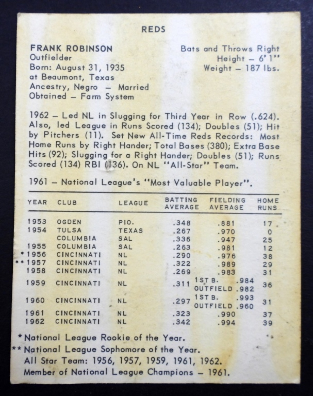1963 KAHN’S WIENERS BILL MAZEROSKI, CINCINNATI REDS (HOF) WELL PRESERVED
