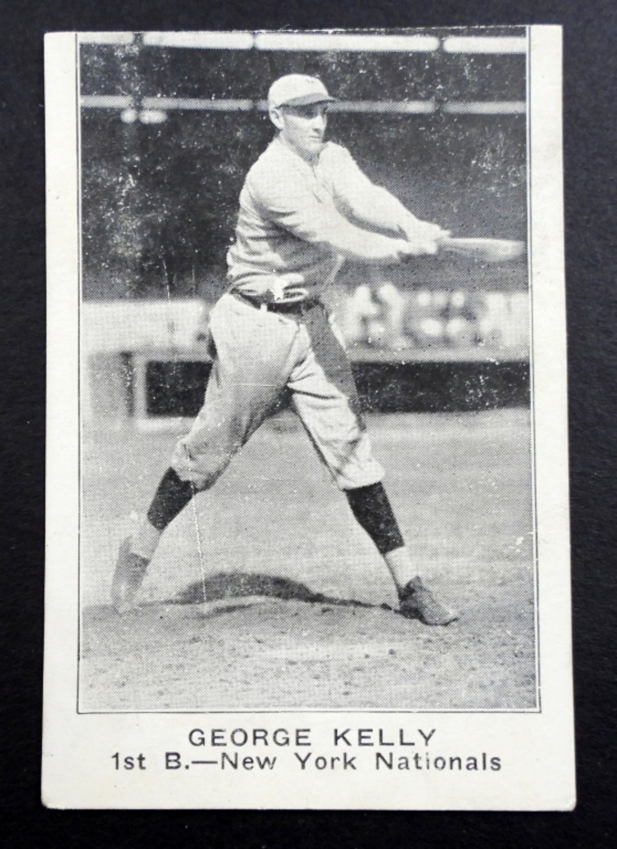 1921-22 AMERICAN CARMEL BASEBALL STARS, GEORGE KELLY, NEW YORK NATIONALS , ANTIQUE BAEBALL CARD (TRIMMED)