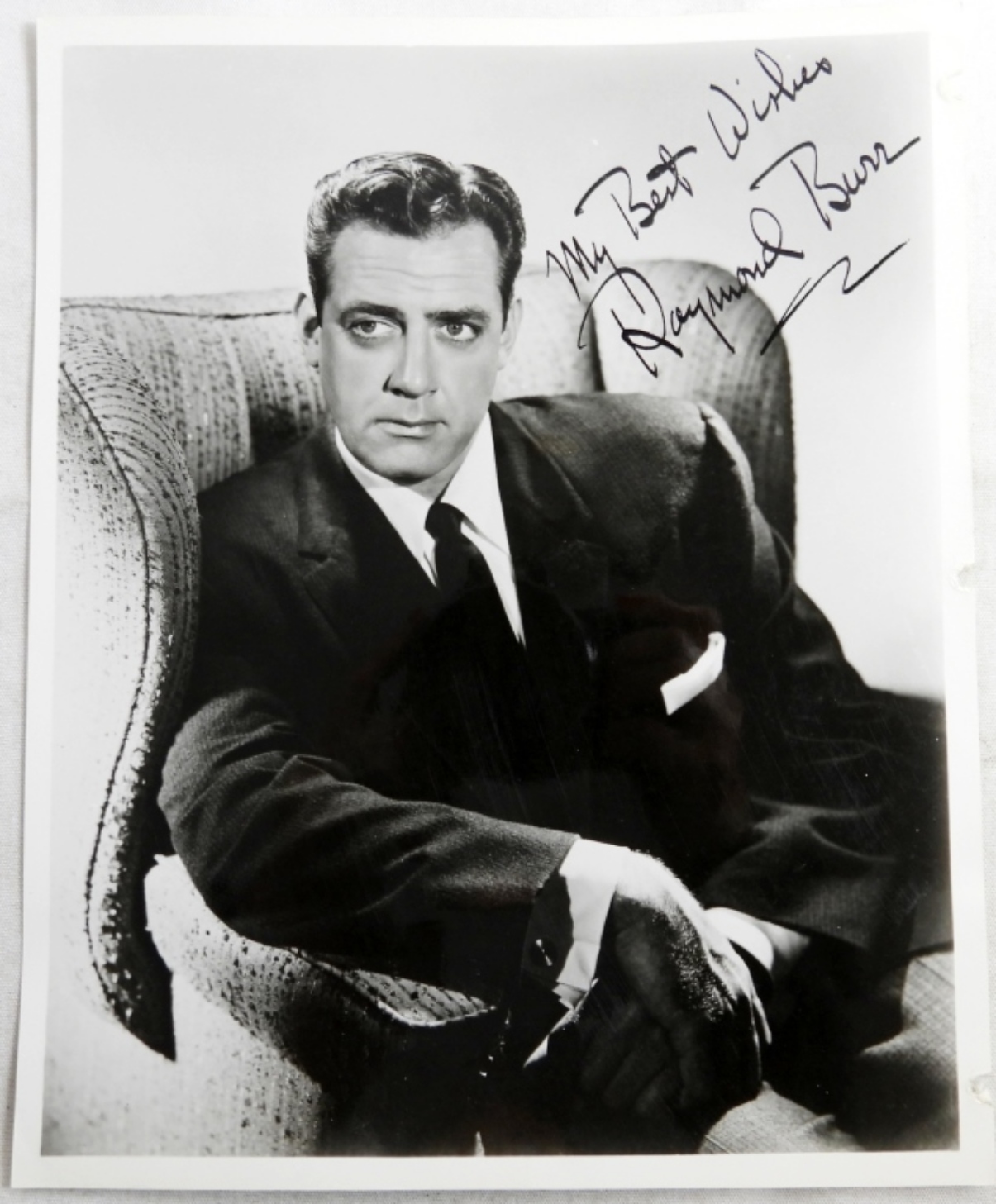 VINTAGE AUTOGRAPHED 8X10 RAYMOND BURR