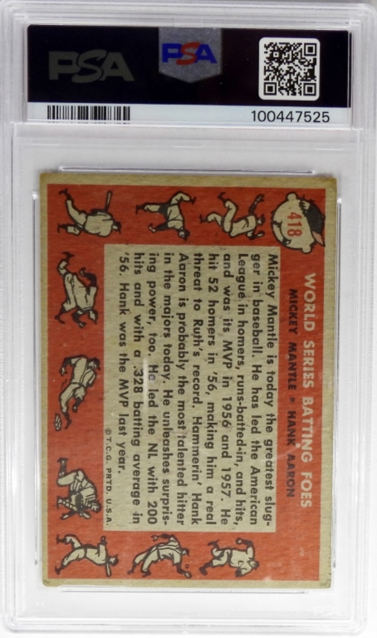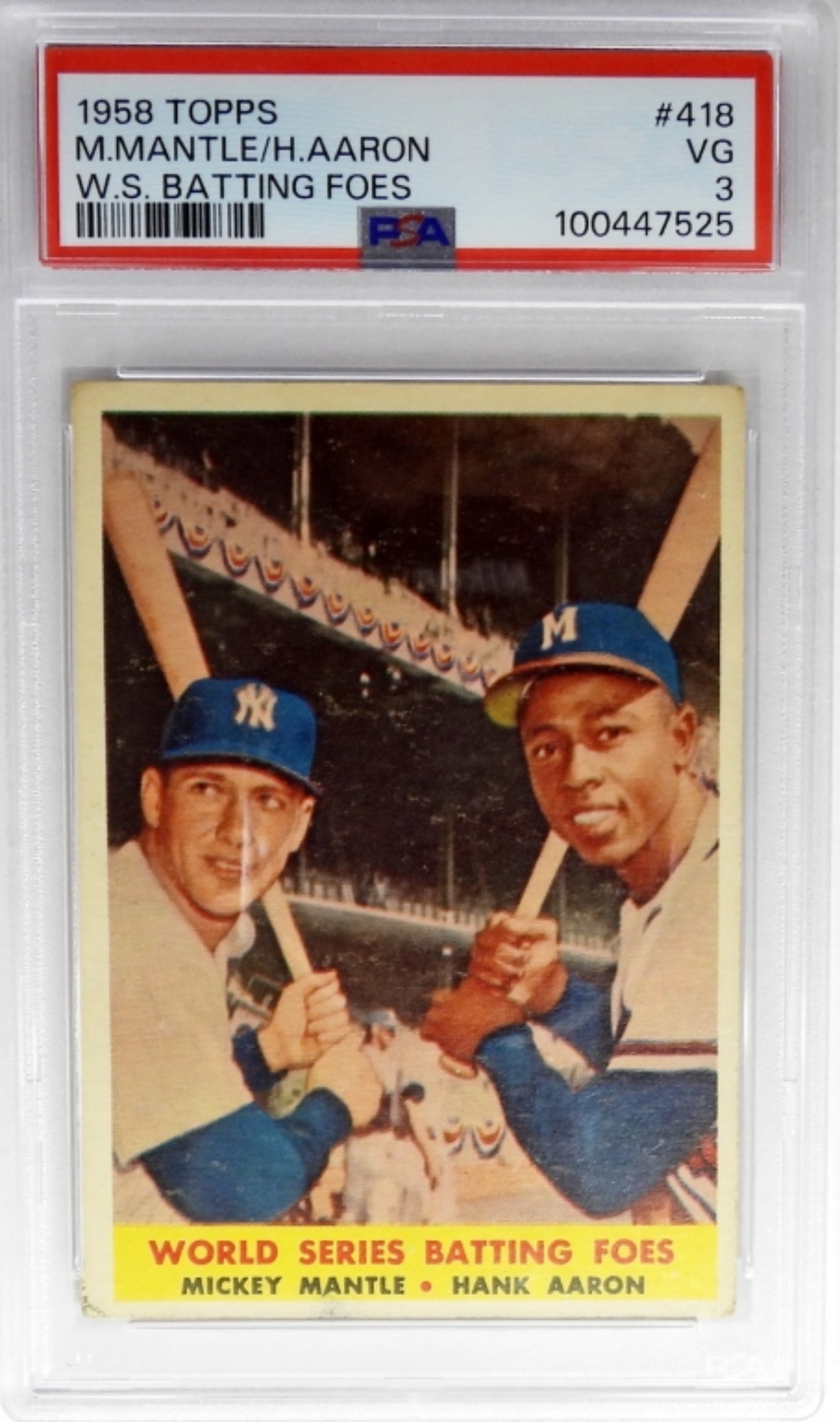 1958 TOPPS #418 M.MANTLE/H.AARON W.S BATTING FOES PSA 3 VG