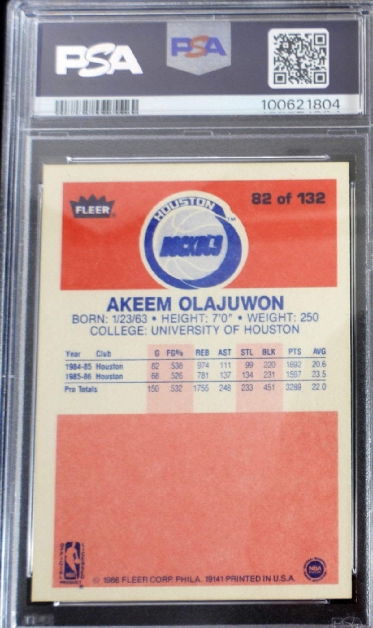 1986 FLEER #82 AKEEM OLA JUWON PSA 7