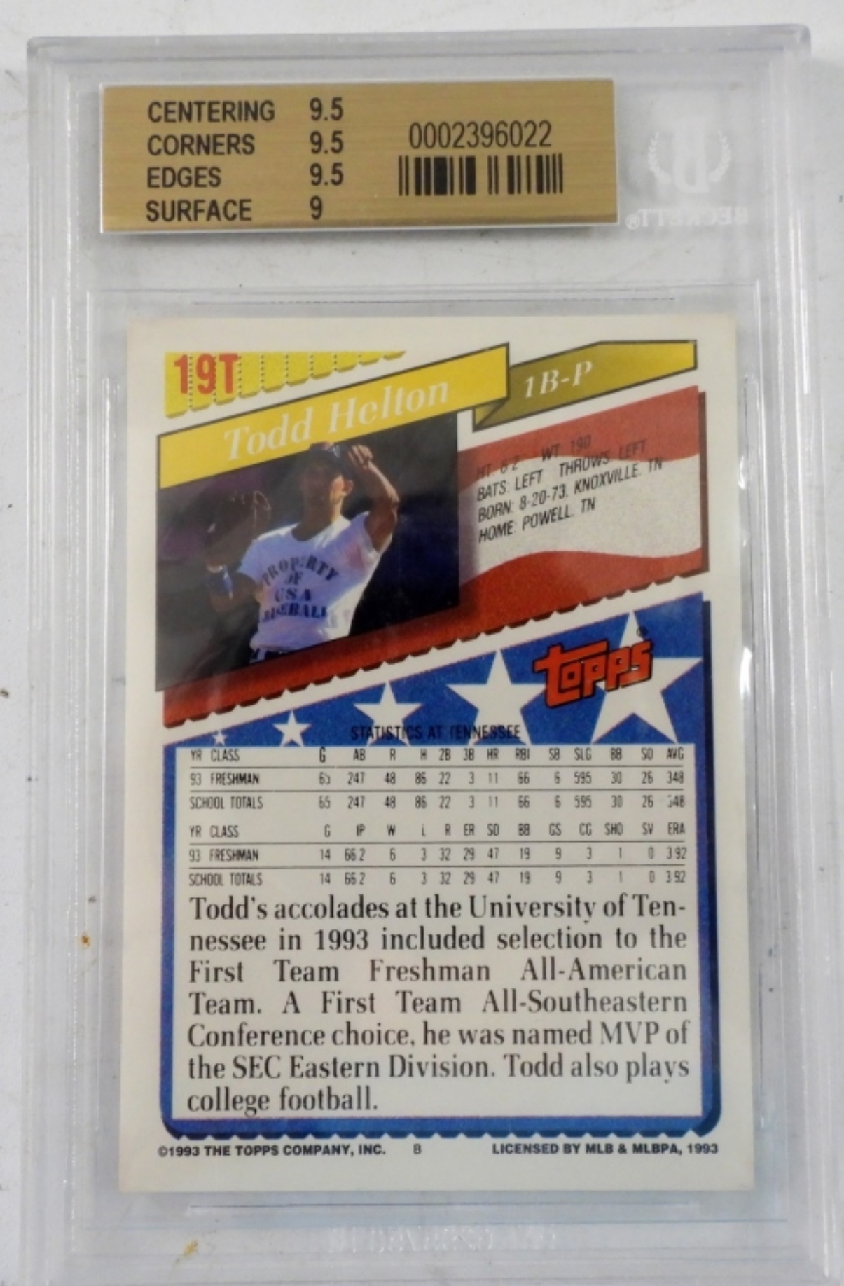 9.5 GEM MINT BECKETT TOPPS TRADED #19T TODD HELTON