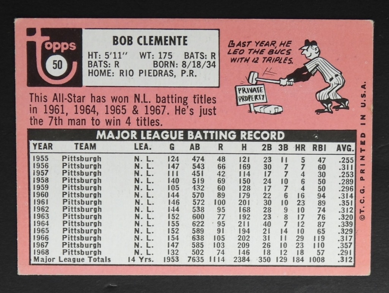 1969 TOPPS# 50 ROBERTO CLEMENTE VG+
