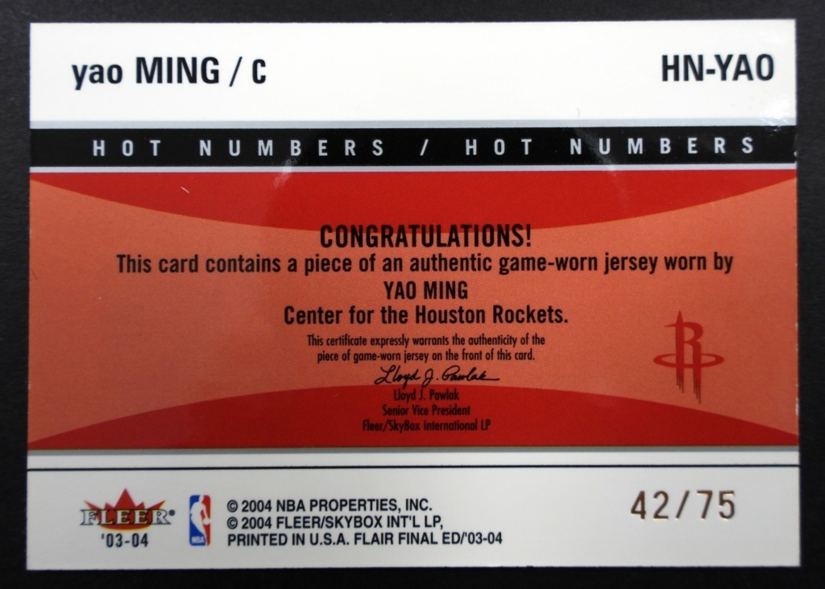 (1) 04' YAO MING 24/75 LIMITED CARD