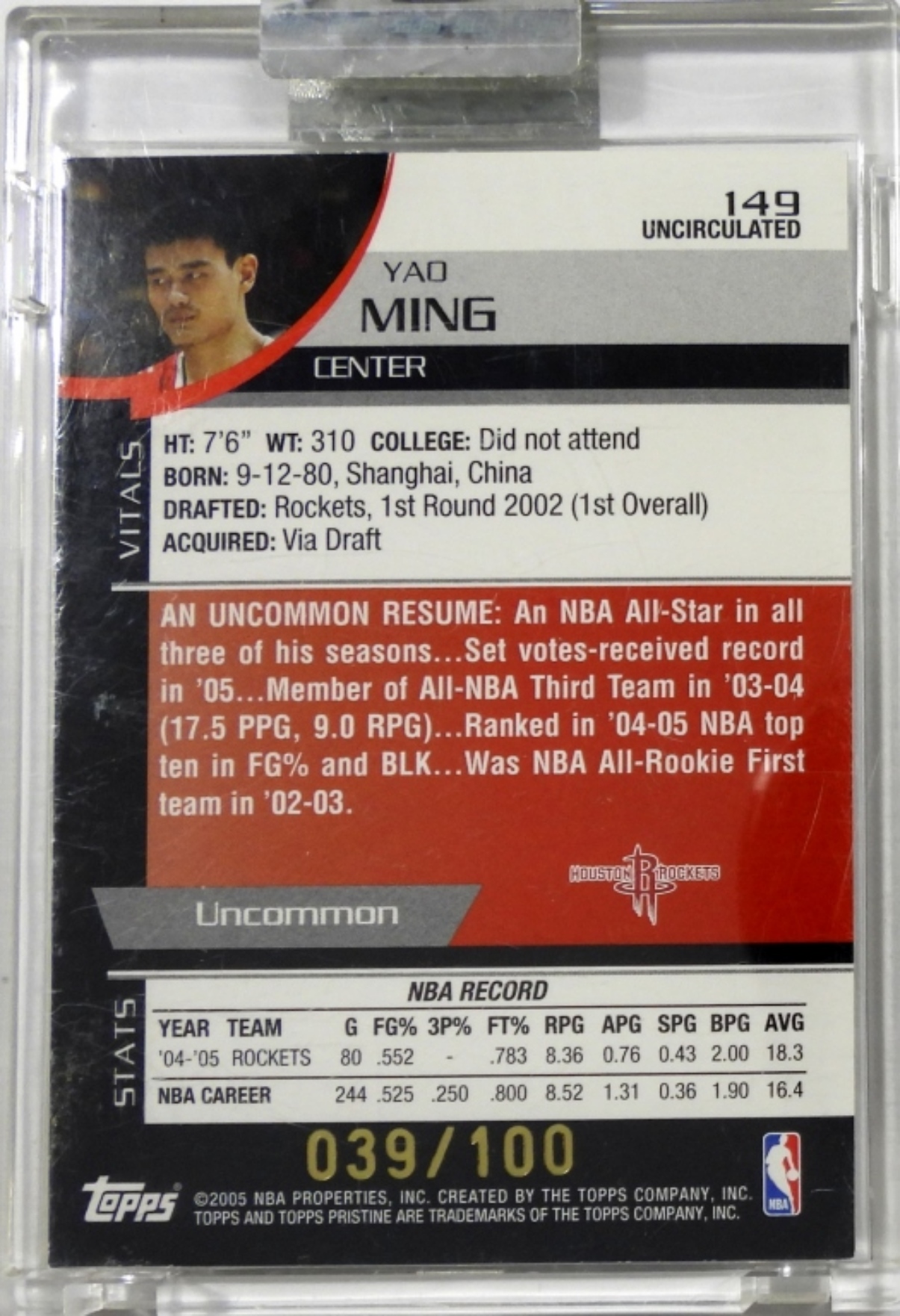 AUTHENTIC GAME WORN JERSEY, UNCOMMON TOPPS