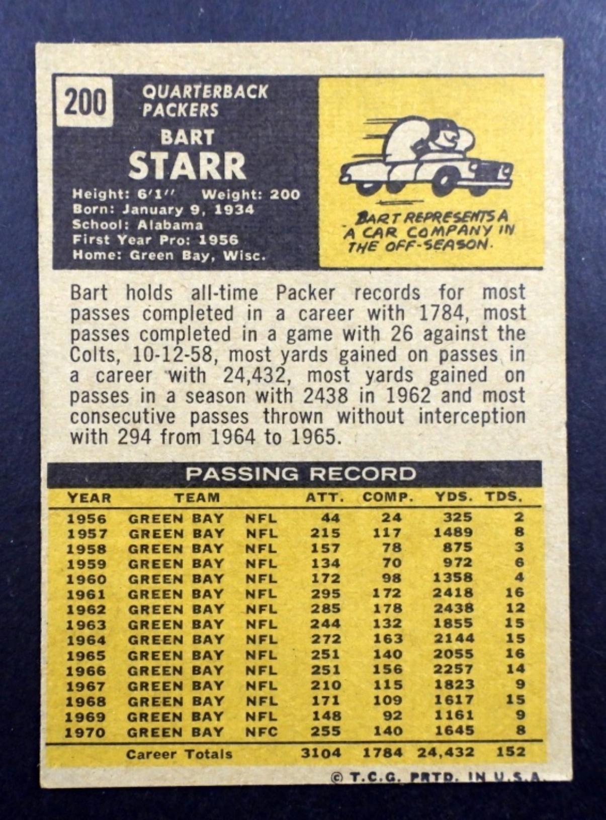 HOF PACKERS QUARTERBACK FOOTBALL CARD,