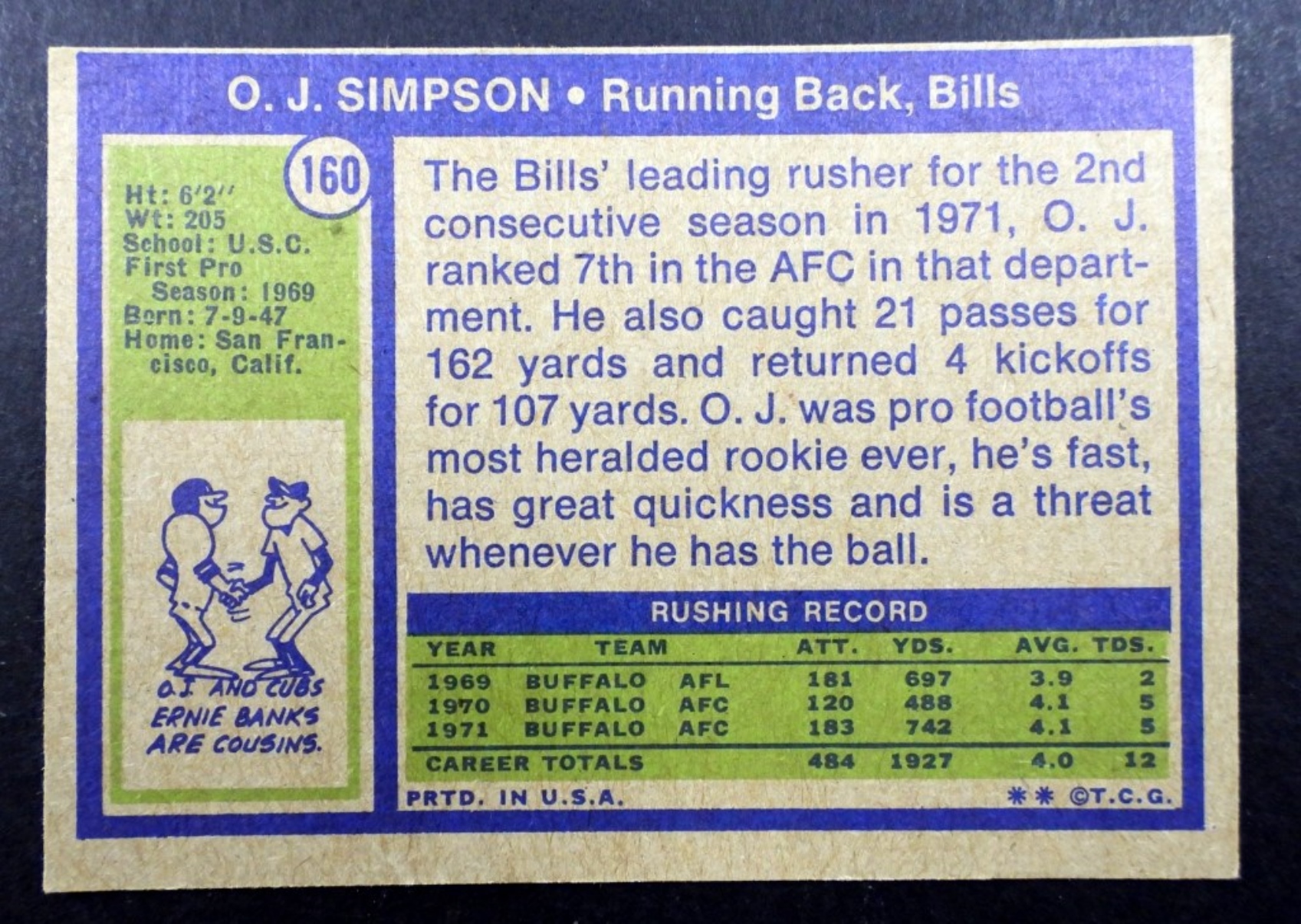 HOF BILLS RUNNING BACK FOOTBALL CARD,