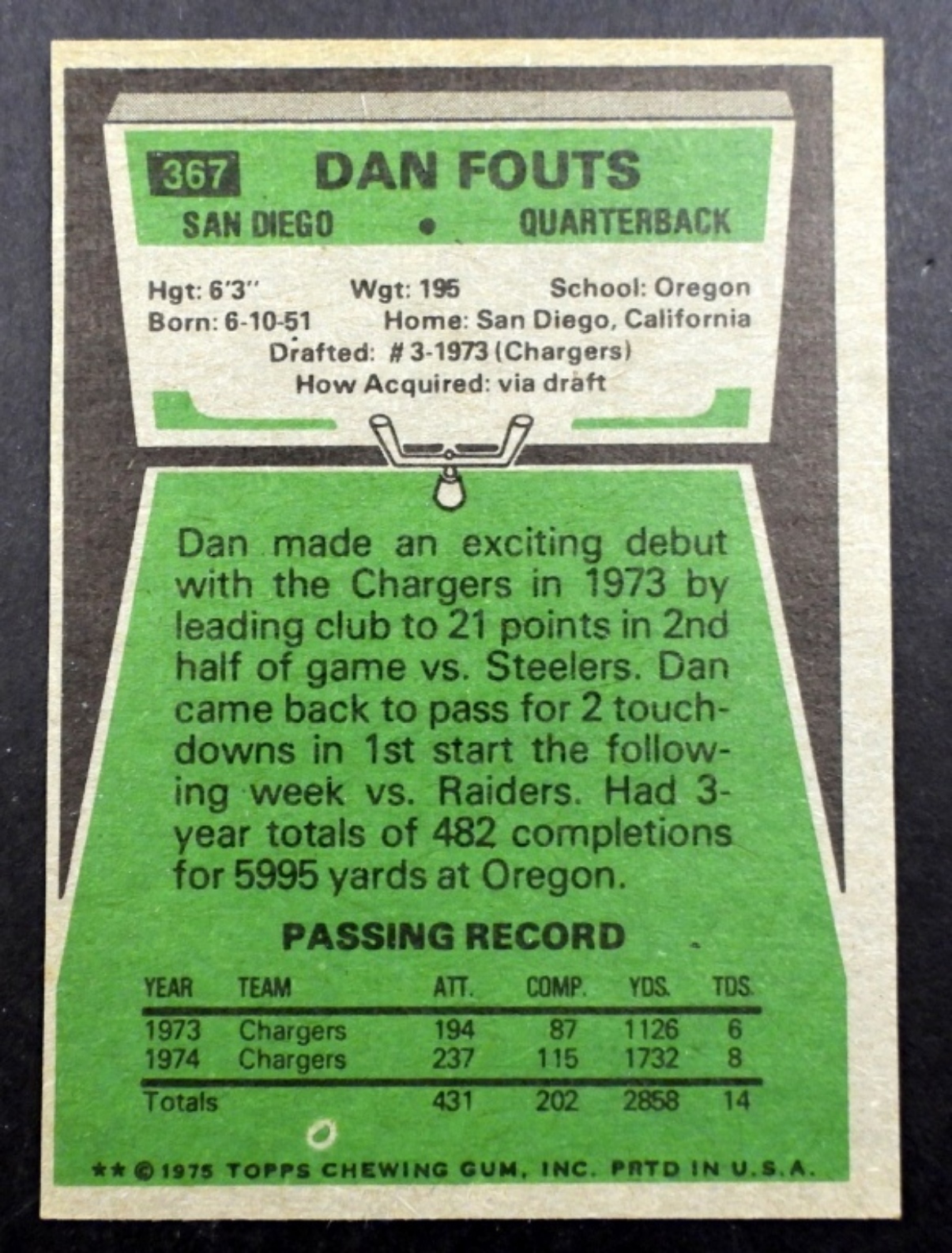 ROOKIE FOOTBALL CARD, SAN DIEGO CHARGERS, QUARTERBACK,