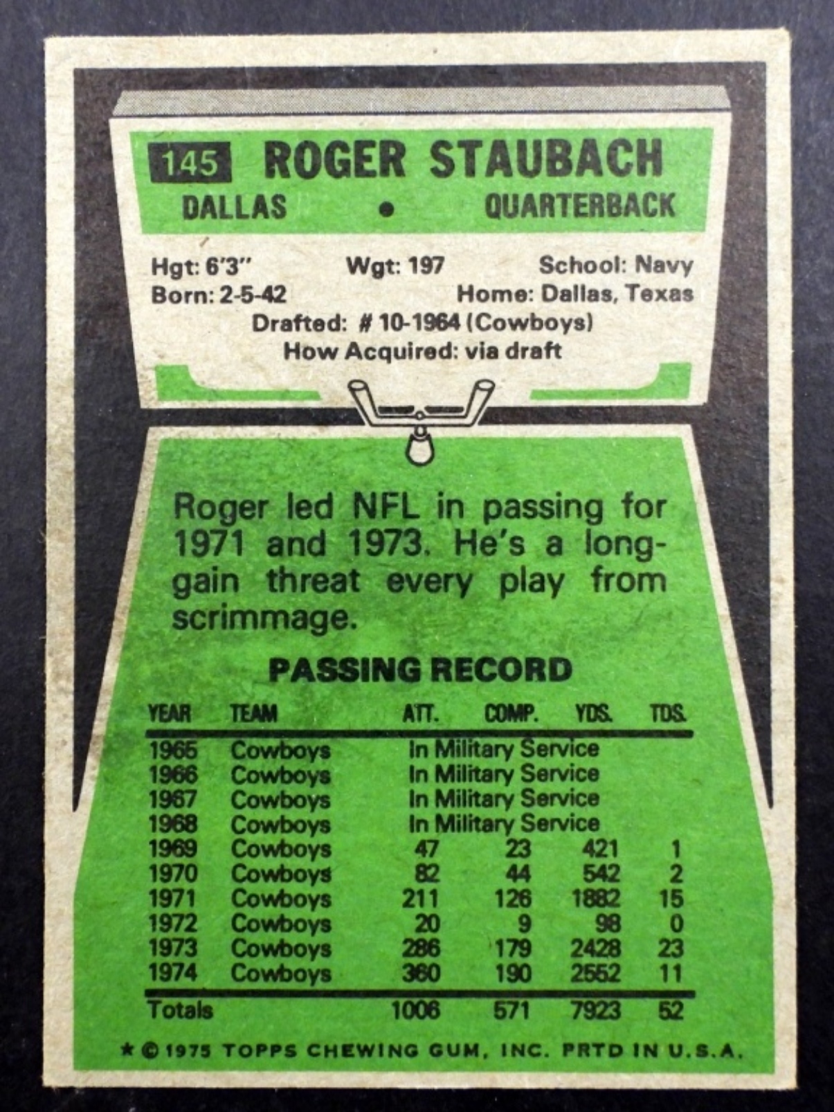 HOF DALLAS COWBOYS QUARTERBACK,