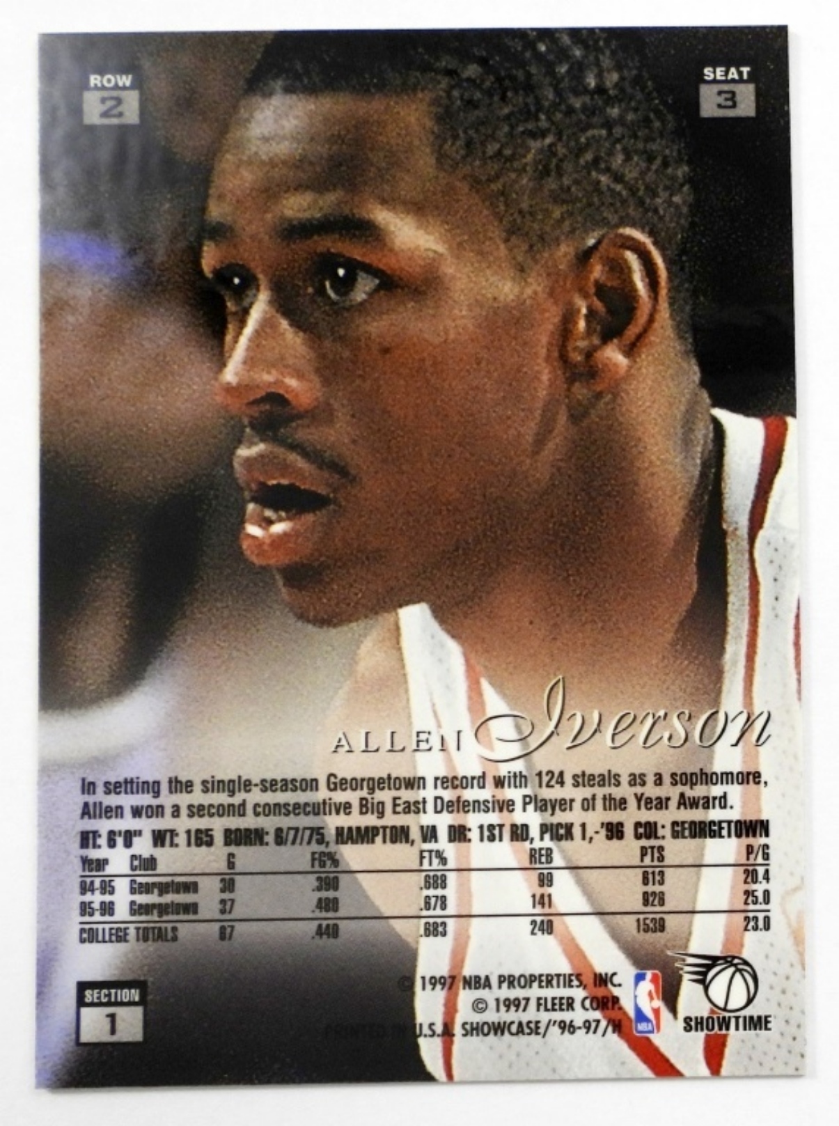 FLAIR SHOWCASE ROOKIE CARD, ROW 2 PHILIDELPHIA 76ERS, FLEER SHOWTIME, VERY GOOD CONDITION