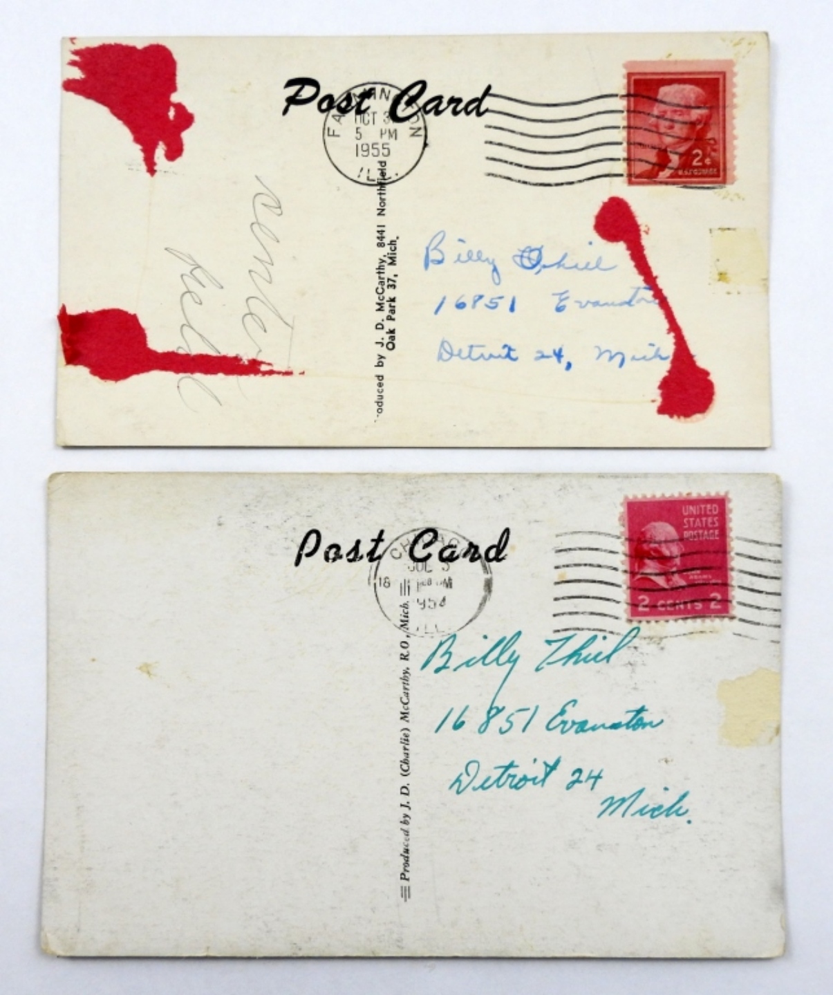 VINTAGE 1954 MATT BATTS AND 1955 BILL TUTTLE AUTOGRAPH J.D MC CARTHY POSTCARD( NO COA)