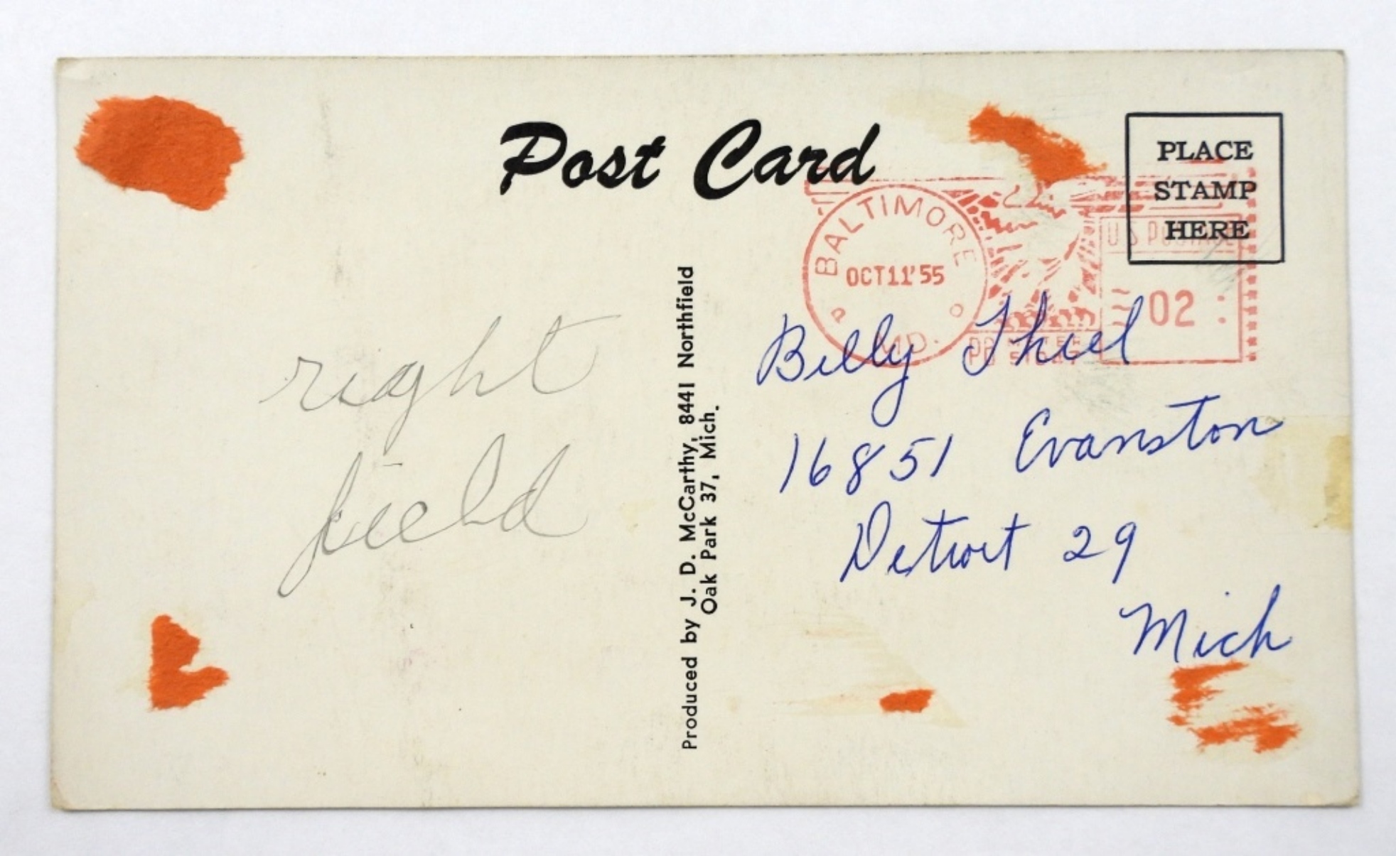VINTAGE 1955 AL KALINE, DETROIT TIGERS , AUTOGRAPH J.D.MC CARTHY POSTCARD (NO COA)