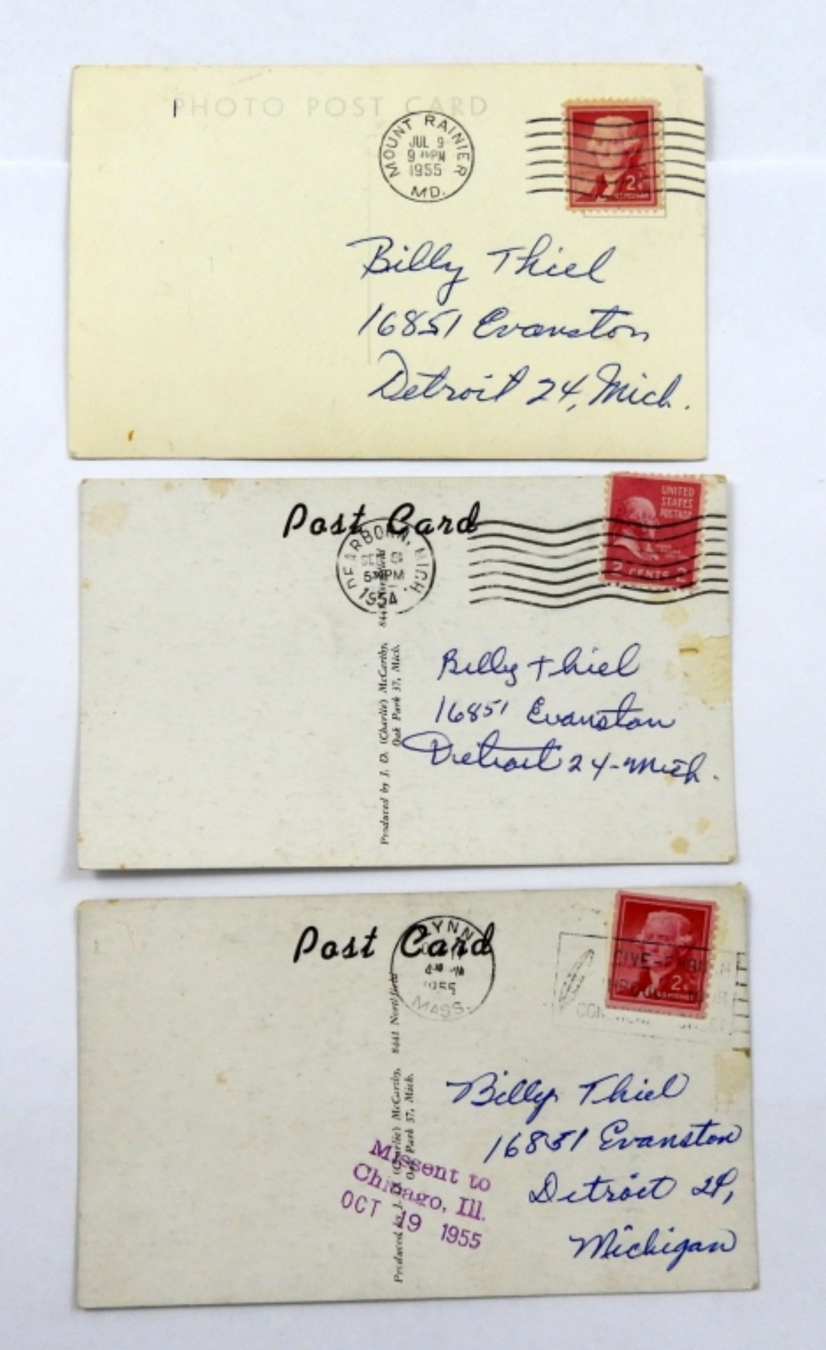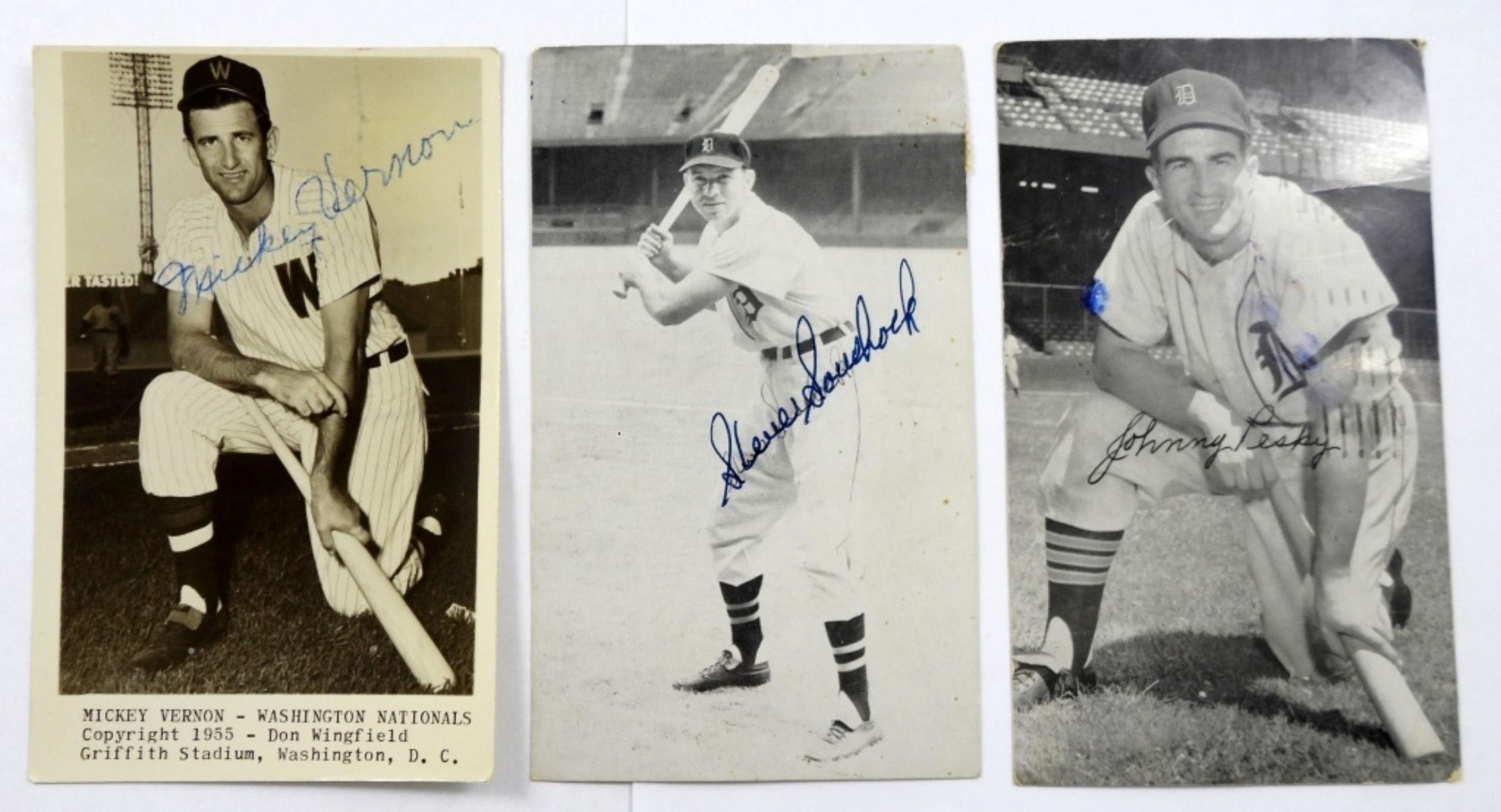 (3) VINTAGE SIGNED BASEBALL POSTCARDS, JOHNNY PESKY, STEVE “BUD” SOUCHECK & MICKEY VERNON ( NO COA )