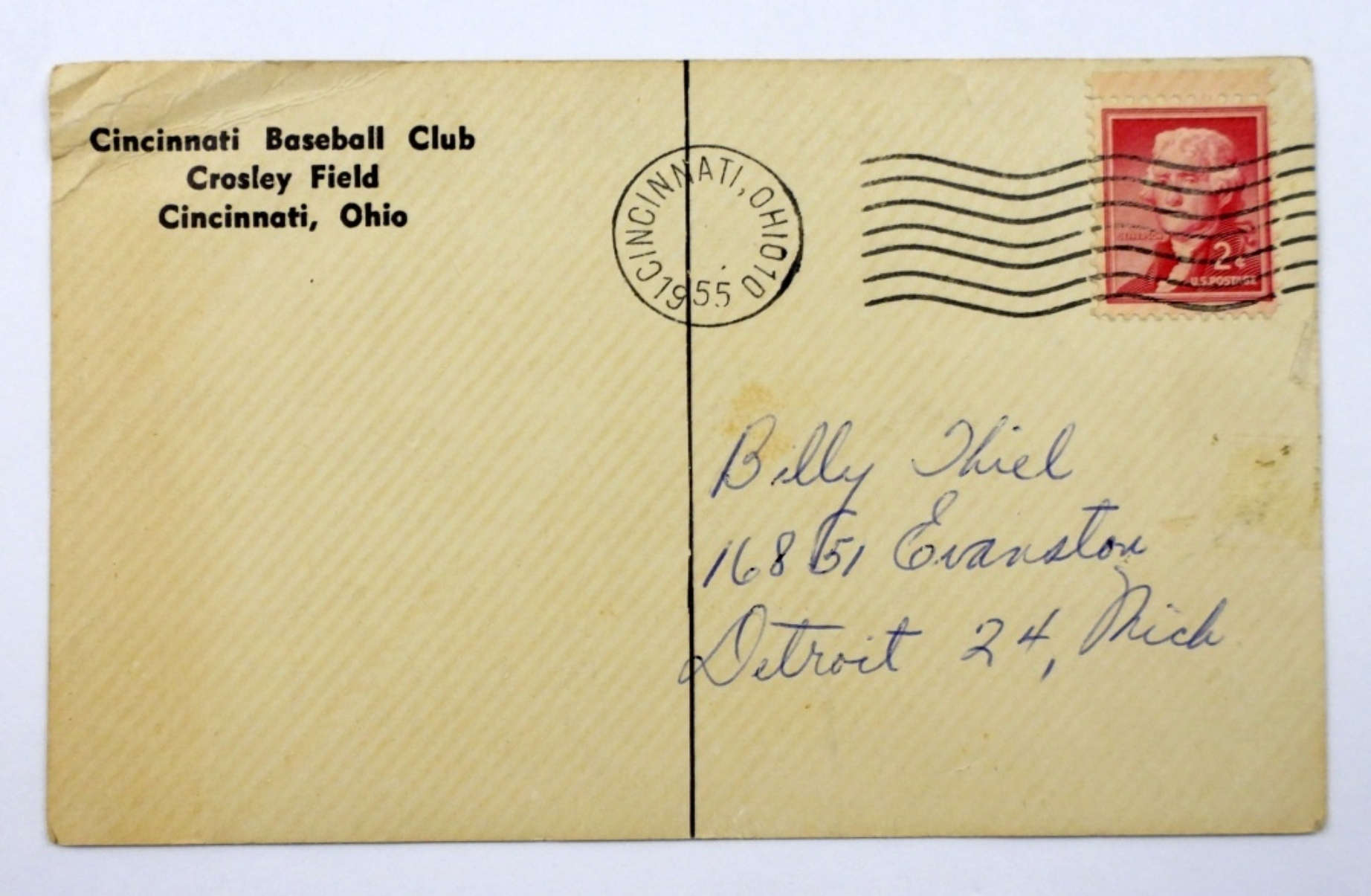 VINTAGE 1955 TED KLUSZEWSKI AUTOGRAPH POSTCARD ( NO COA)