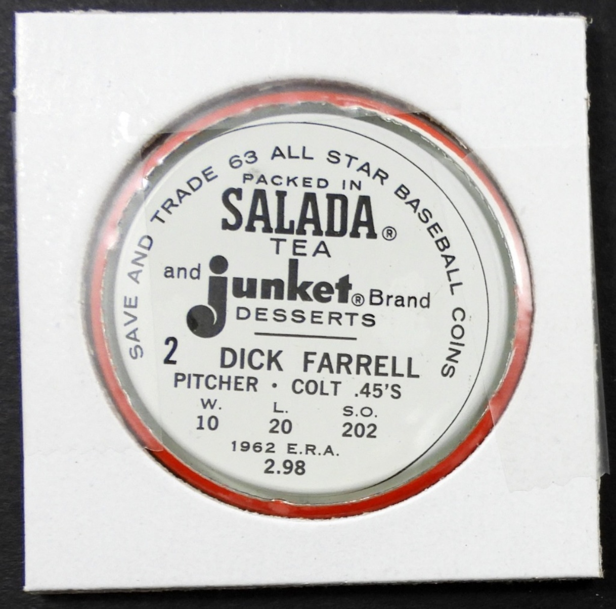 VINTAGE 1962 SALADA COIN #2 DICK FARRELL, COLTS