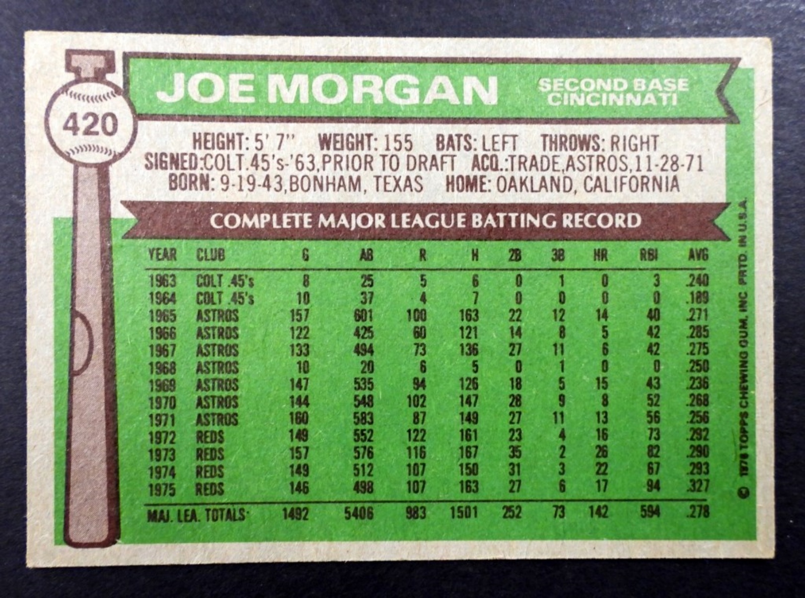 HOF/ALL STAR, 2ND BASE, CINCINNATI REDS, GOOD CONDITION