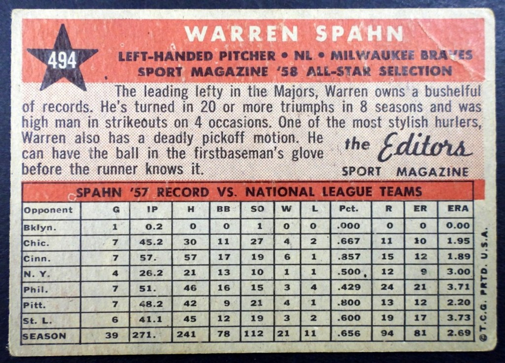 ALL STAR SELECTION, SPORT MAGZINE, NATIONAL LEAGUE, LEFT-HANDED PITCHER, MILWAUKEE BRAVES, VERY GOOD CONTION