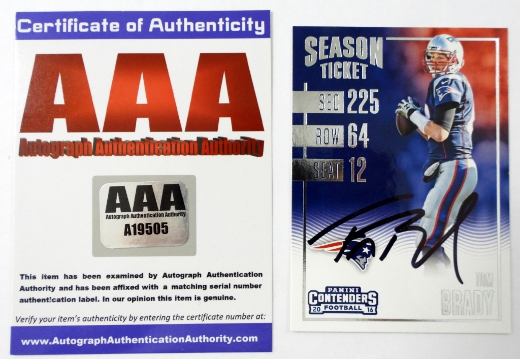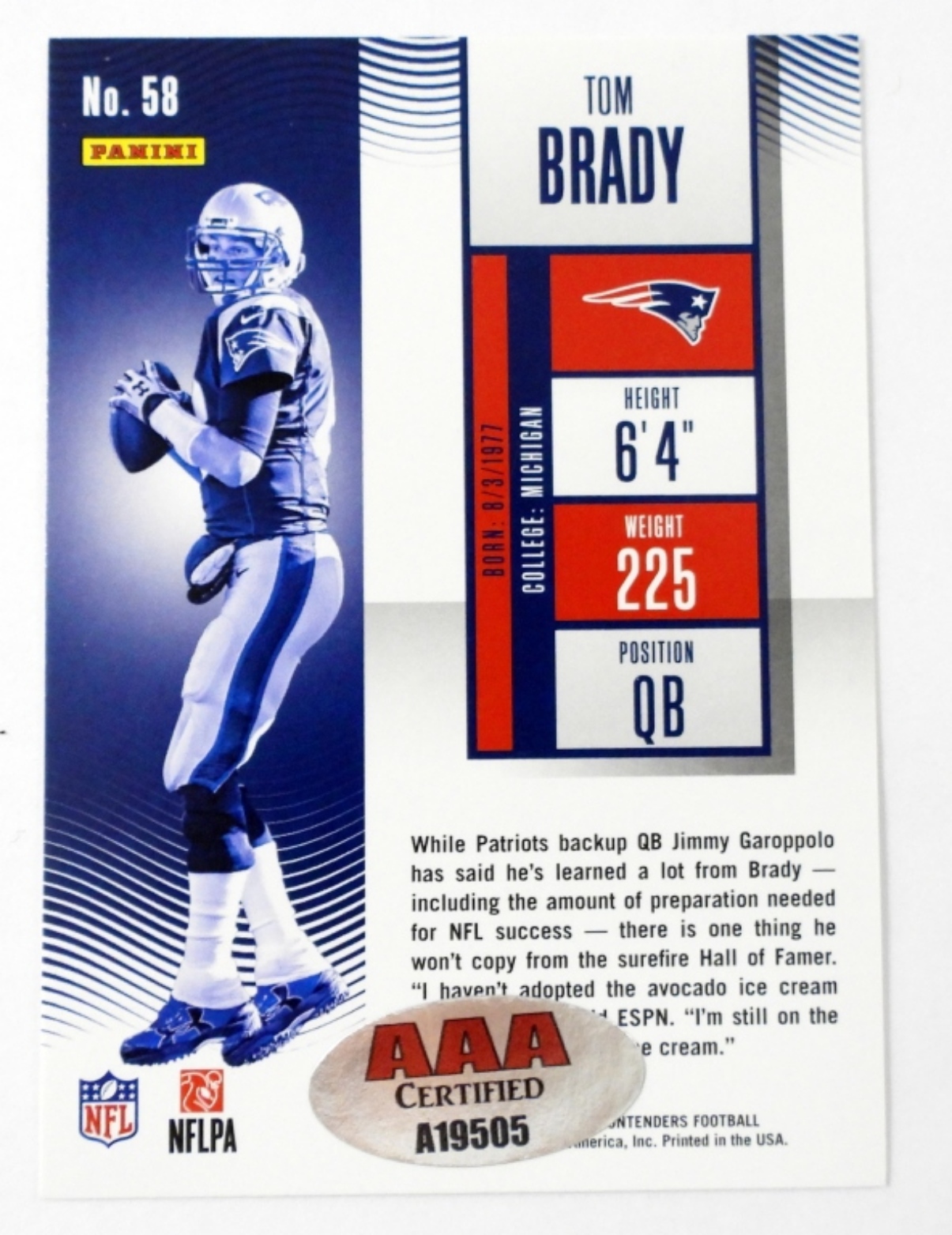 WITH COA,PANINI CONTENDERS, SEASON TICKET #58, QUARTERBACK NEW ENGLAND PATRIOTS, VGEX+