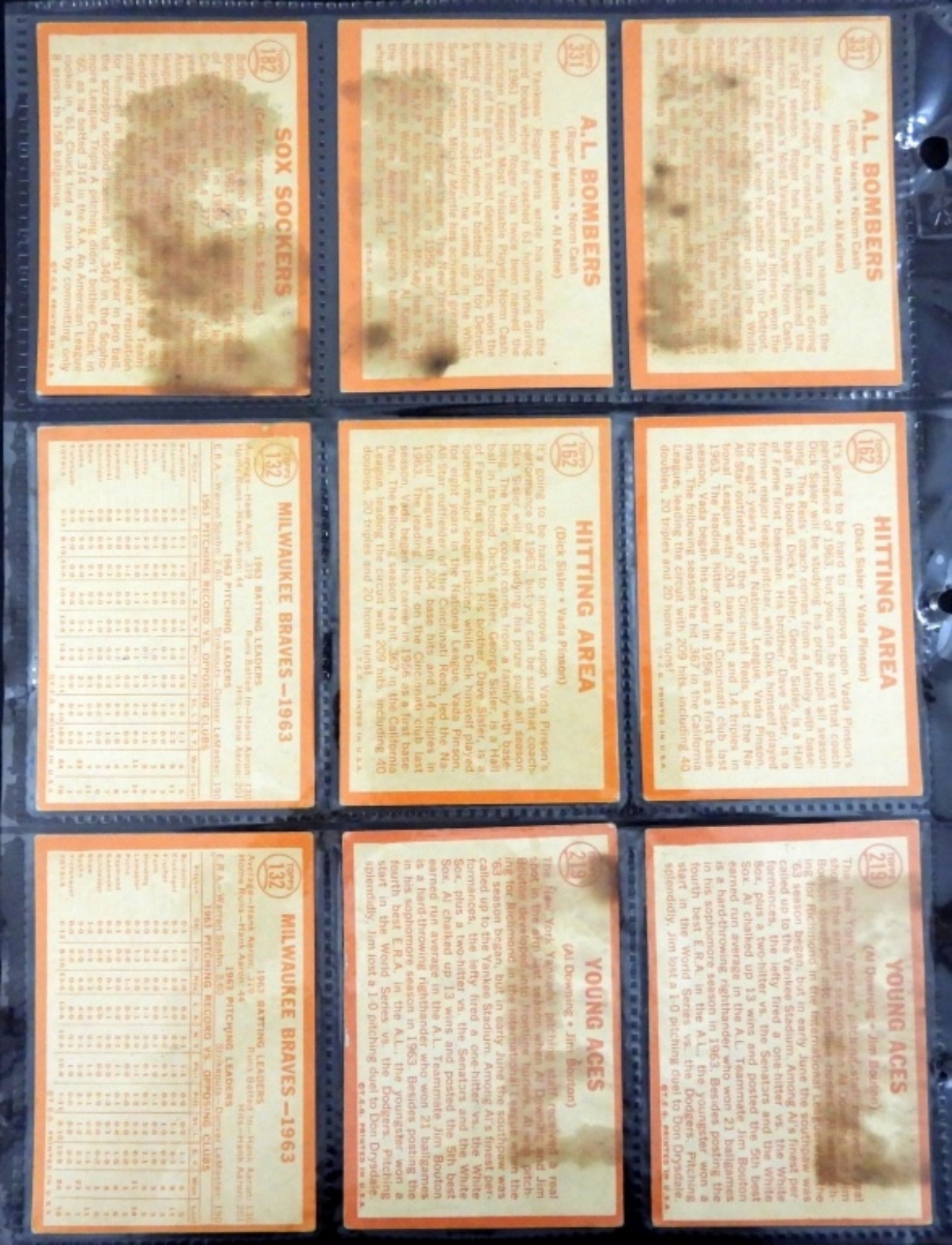 (2) A.L. BOMBERS (2) YOUNG ACES (1) SOX SOCKERS all with stains – REST VGEX or BETTER
