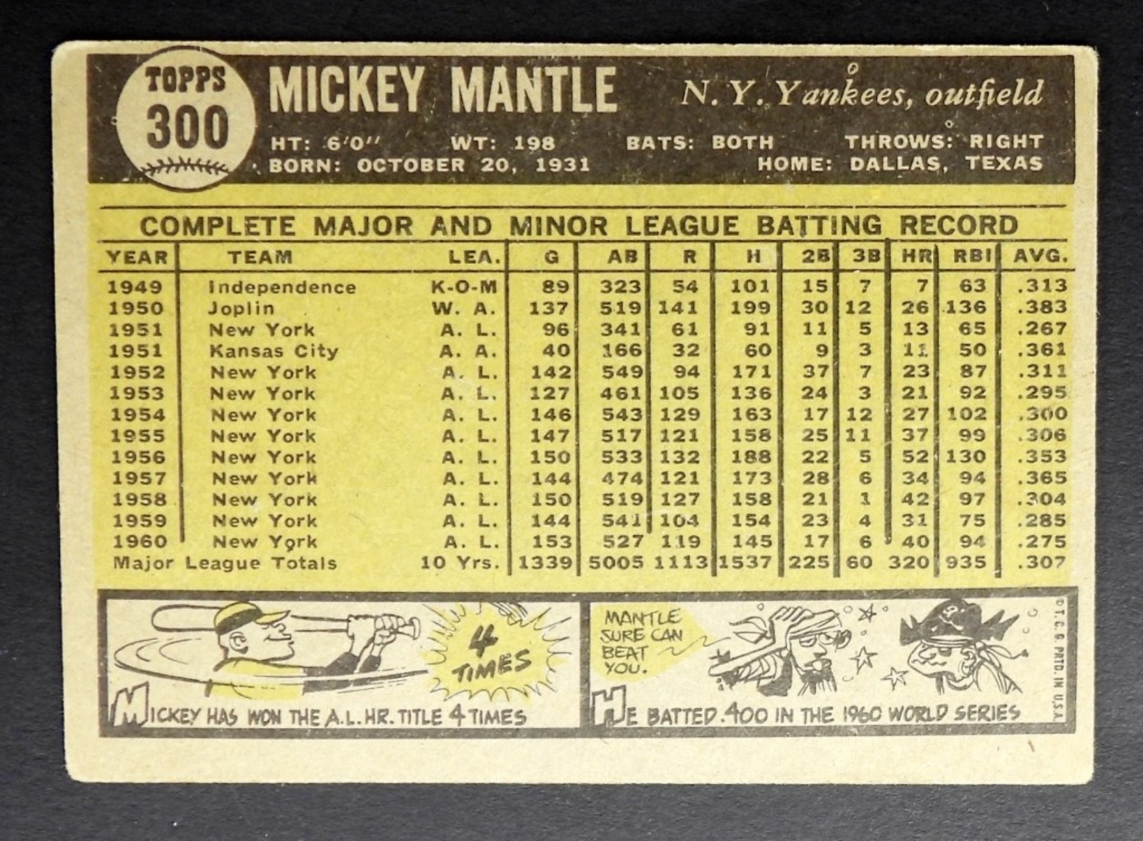 1961 TOPPS #300 MICKEY MANTLE VGEX O/C