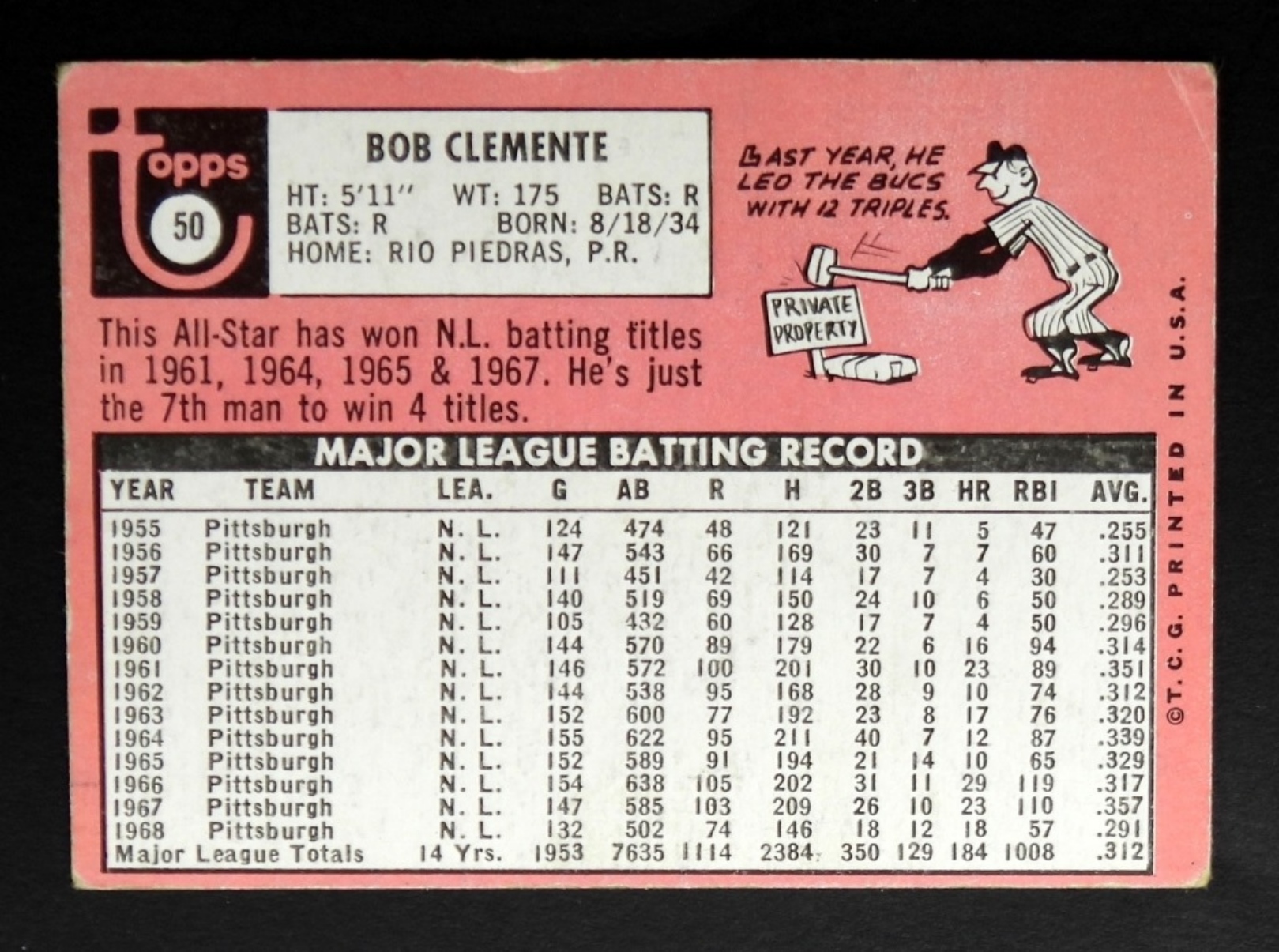 1969 TOPPS # 50 ROBERTO CLEMENTE VGEX+